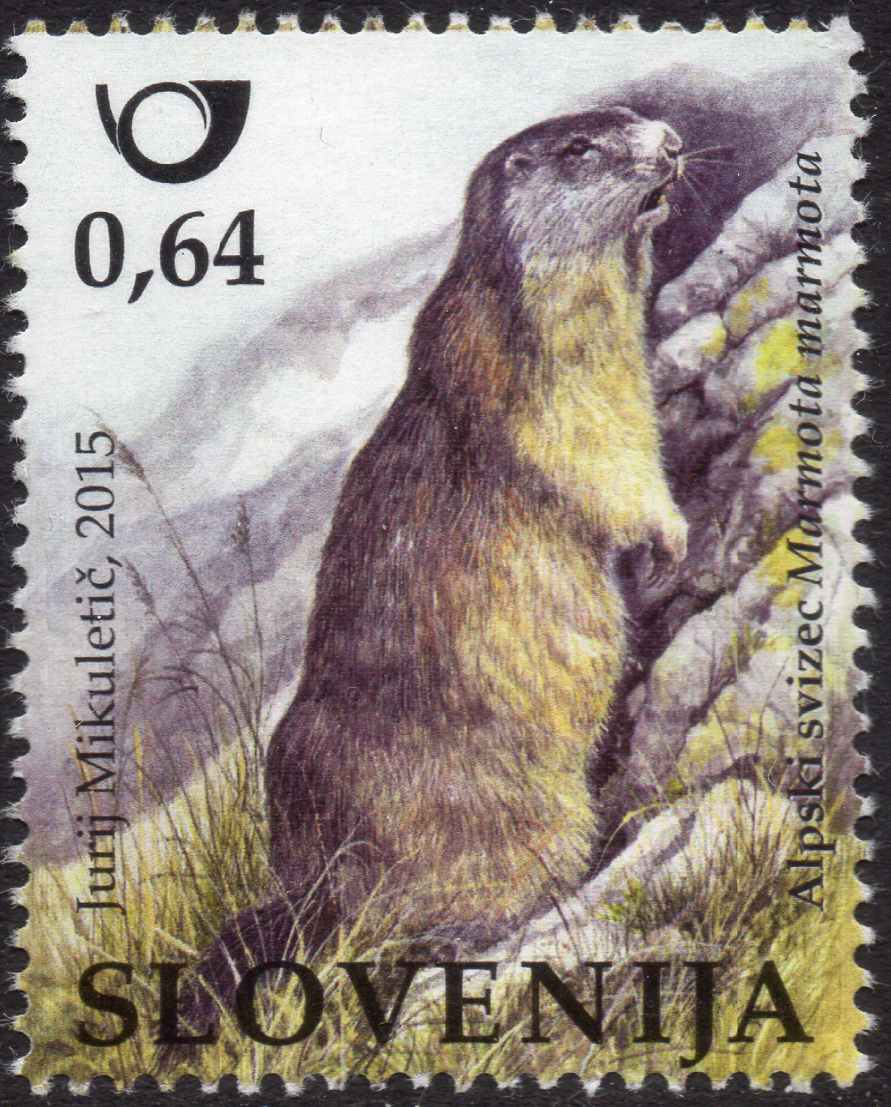 In Slowenien ist diese Marke (MiNr 1160) mit einem Alpenmurmeltier (Marmota marmota) erschienen.