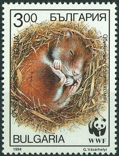 Eine 4wertige Markenausgabe der bulgarischen Post zeigt uns einen Feldhamster in seinen Jahreszeiten.