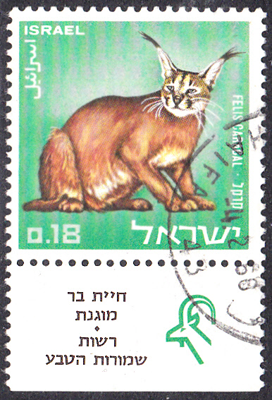 Auch diese Marke aus Israel (MiNr 404) zeigt uns einen Karakal (Caracal caracal).