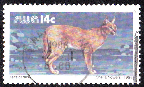 Diese Marke aus Südwestafrika (MiNr 587) zeigt einen weiteren Karakal (Caracal caracal).