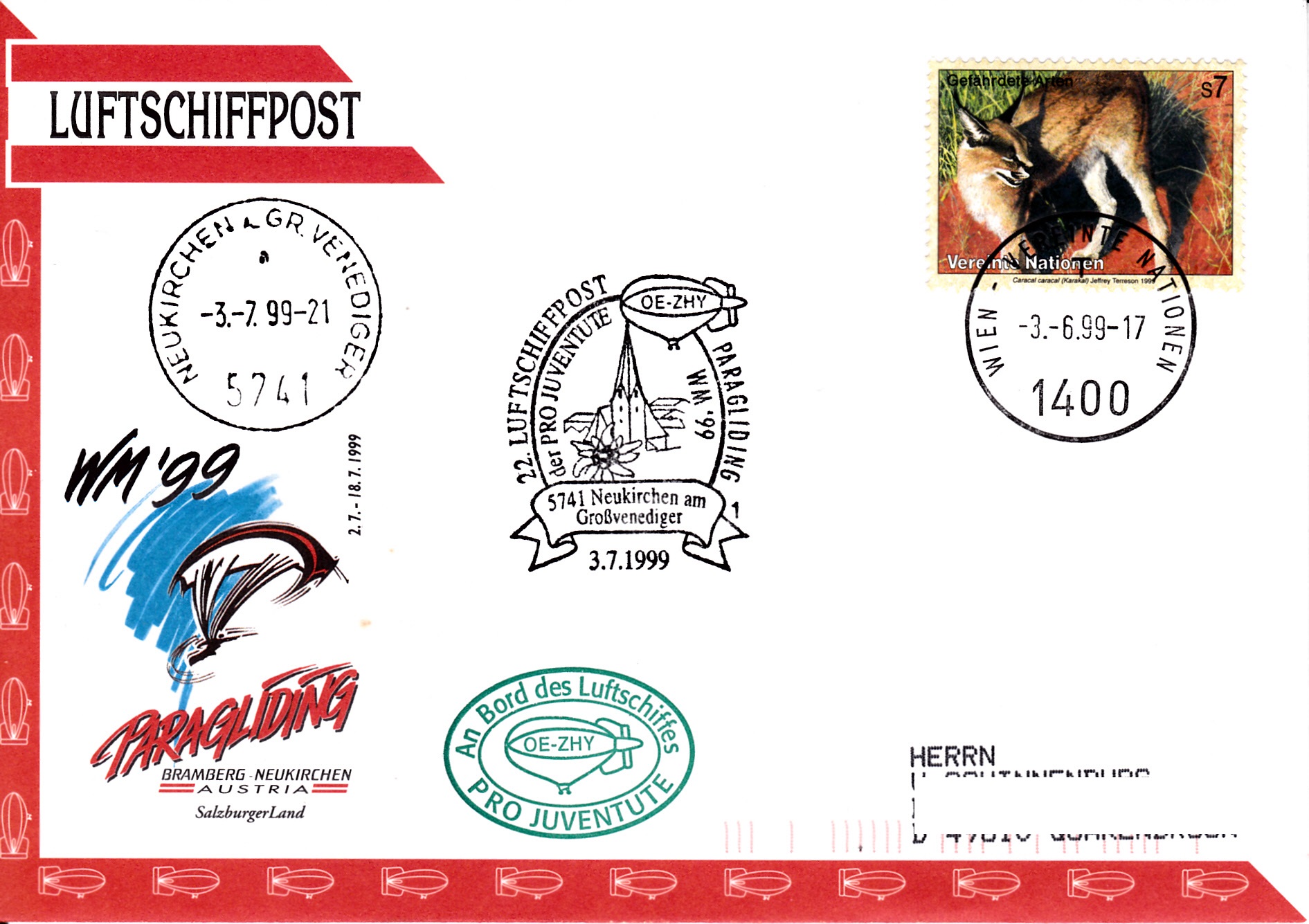 Diese Marke wurde hier auf diesem Brief zur 22. Luftschiffpost der Österreichischen Pro Juventute als Frankatur verwendet.