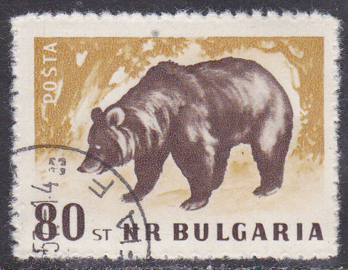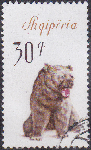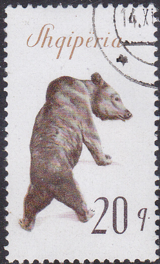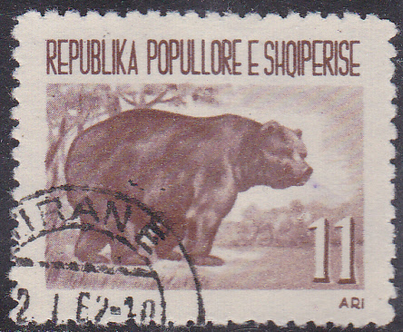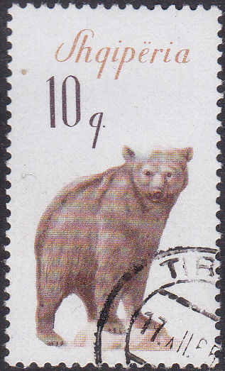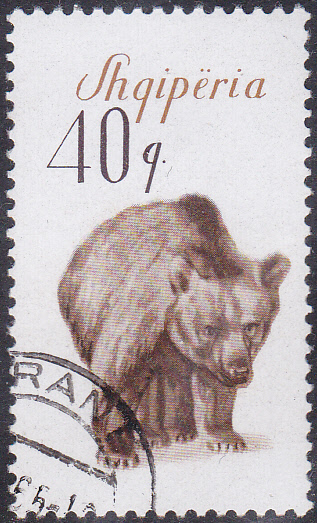 Auf dieser Marke aus Albanien (MiNr 629) wird ein Braunbär (Ursus arctos) abgebildet.