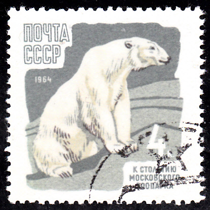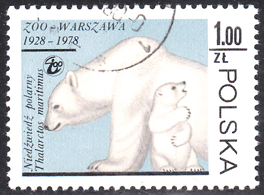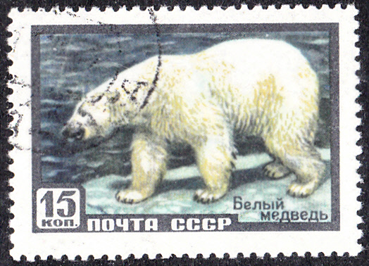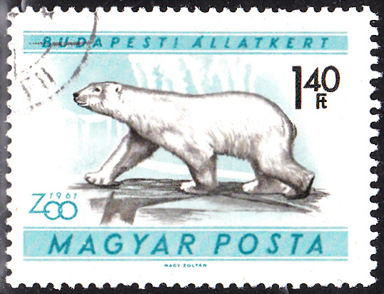 Auf dieser Marke aus Bulgarien (MiNr 1622) aus einer Serie "Zoologischer Garten von Sofia" ist ein Eisbär (Ursus maritimus) zu sehen.
