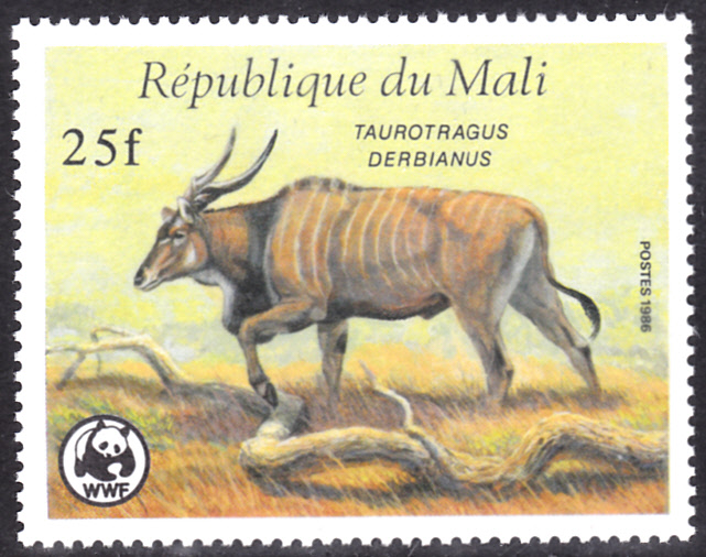 Auf dieser Marke aus Angola (MiNr 371) ist eine Elenantilope (Taurotragus oryx) zu sehen.