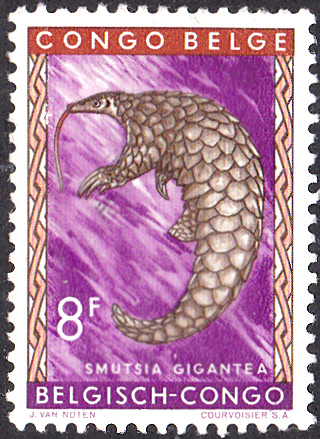 Diese Marke aus Belgisch-Kongo (MiNr 353) zeigt uns ein Riesenschuppentier (Smutsia gigantea).