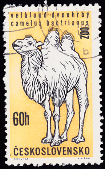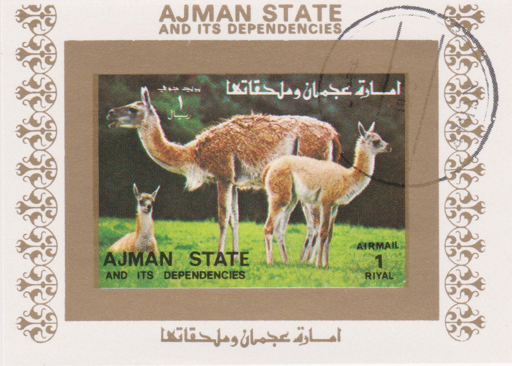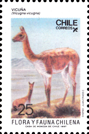 Auf dieser Marke der Sowjetunion (MiNr 3549) wird vorne ein Guanako (Lama guanicoe) gezeigt.