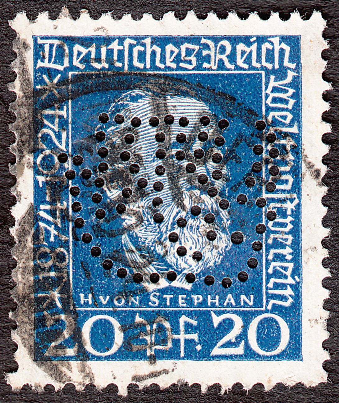 Hier eine Marke des Deutschen Reiches mit Firmenlochung = Perfin in Form eines Elefanten: