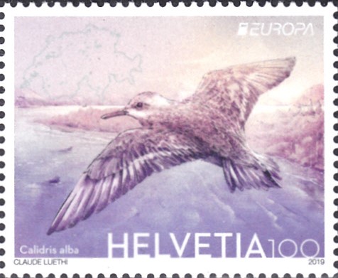 Auf dieser Marke aus Chile (MiNr 1190) ist ein Sanderling (Calidris alba) abgebildet.
