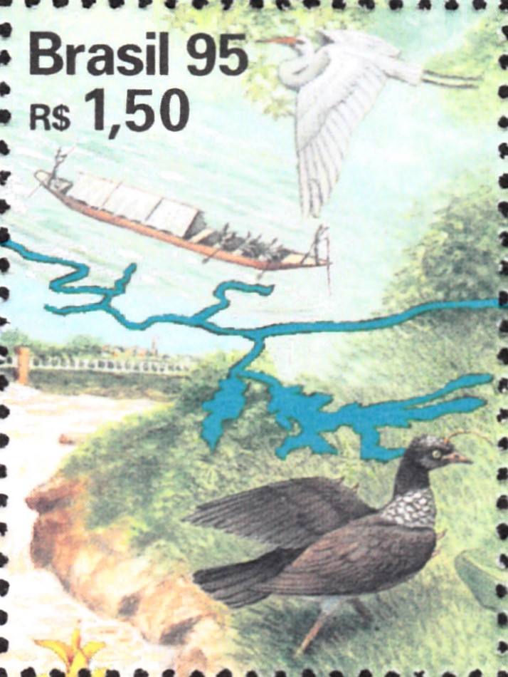Zur Briefmarkenausstellung LUBRAPEX ’95 in São Paulo ist in Brasilien eine Marke mit einem Hornwehrvogel (Anhima cornuta) erschienen. Die Marke gibt es aus dem Bogen (MiNr 2665) und aus einem Block (MiNr 2667 aus Block MiNr Block 99). Die Bogenmarke hat im Gegensatz zur Blockmarke einen weißen Markenrand. Hier zeige ich eine Marke aus dem Block.
