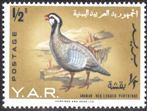 Auf dieser Marke (MiNr 410) aus Jemen-Nord (Arab. Republik) ist ein Schwarzkopfsteinhuhn (Alectoris melanocephala) abgebildet. Im Michel wird es Schwarzkopf-Felsenhuhn (Alectoris melanocephala) genannt.