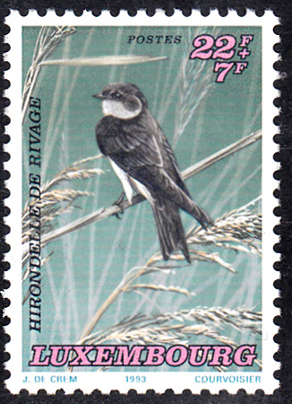 In Luxemburg erschien 1993 eine Marke mit (MiNr 1333) einer Uferschwalbe (Riparia riparia).