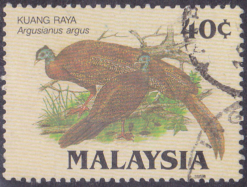 Diese Marke aus Malaysia (MiNr 320) zeigt einen Argusfasan oder Arguspfau (Argusianus argus).