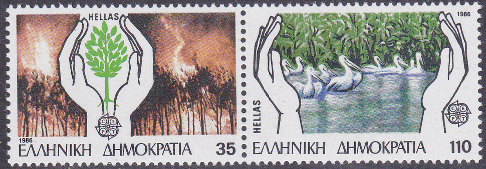Die hier schon gezeigte Europamarke 1986 aus Griechenland (MiNr 1630) mit Krauskopfpelikane auf dem Prespasee, gibt es auch als vierseitig gezähnte Marke (MiNr 16 A).