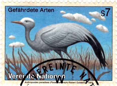 Bei der Postverwaltung der Vereinten Nationen Wien ist eine Marke (MiNr 223) mit dem hier schon beschriebenen Paradieskranich (Anthropoides paradisea) erschienen.