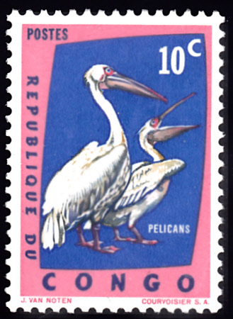 Im Kongo (Kinshasa) ist in einer Serie "Geschützte Vögel" auch eine Marke (MiNr 138) mit einem Rosapelikan (Pelecanus onocrotalus) erschienen.