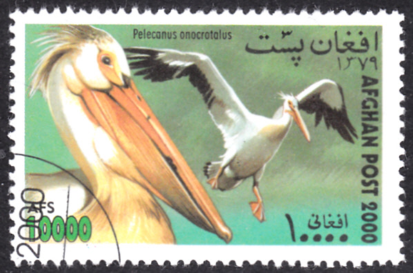 Es folgt hier eine Marke aus Afghanistan (MiNr 1944) mit zwei Rosapelikane (Pelecanus onocrotalus).