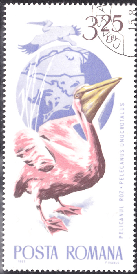 Auch in Rumänien ist eine Marke (MiNr 2439) mit einem Rosapelikan (Pelecanus onocrotalus) erschienen.