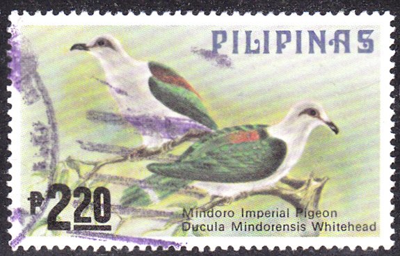 Auf dieser philippinischen Marke (MiNr 1272) sind zwei Große Mindoro-Fruchttaube (Ducula mindorensis) abgebildet. Im Michel werden sie Mindoro-Kaisertaube (Ducula mindorensis) genannt.