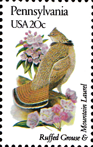 In der Serie "Vögel und Blumen der 50 Bundesstaaten" erschien in den USA eine Marke, (MiNr 1562) die ein Kragenhuhn (Bonasa umbellus) zeigt. Die Marke gibt es in zwei Zähnungen: A = gez. K 11 1/4 und F = gez. L 10 3/4:11 1/4.