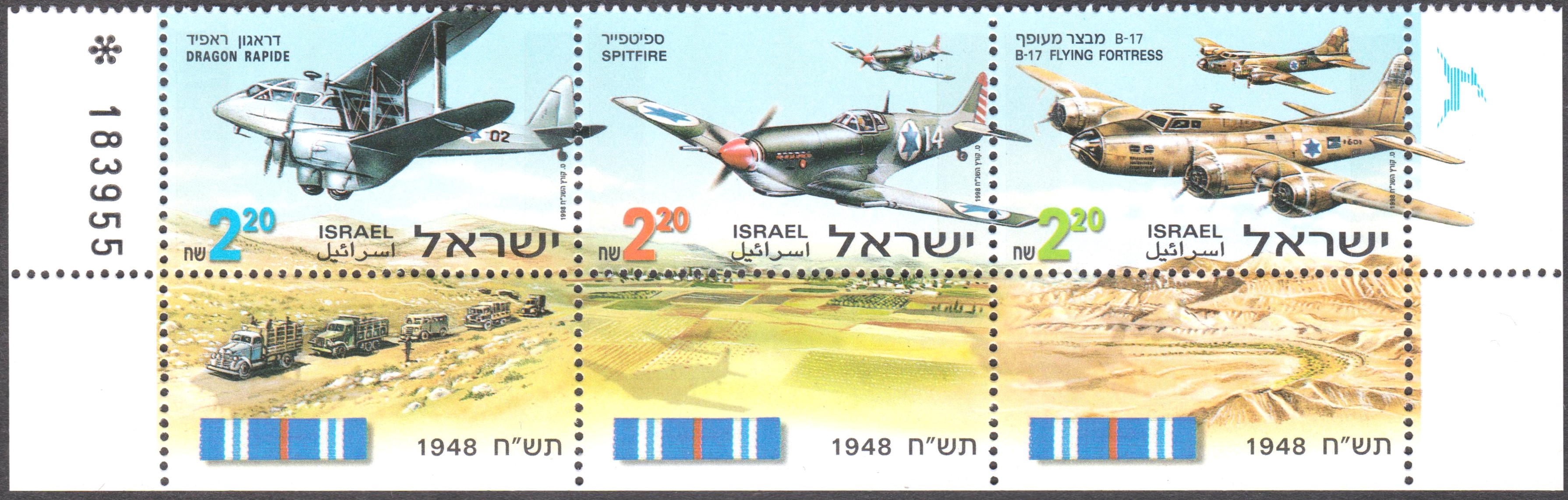 Israel MiNr. 1471-1473 erschienen am 13.05.1998 zum Thema Kampfflugzeuge des Unabhängigkeitskrieges.