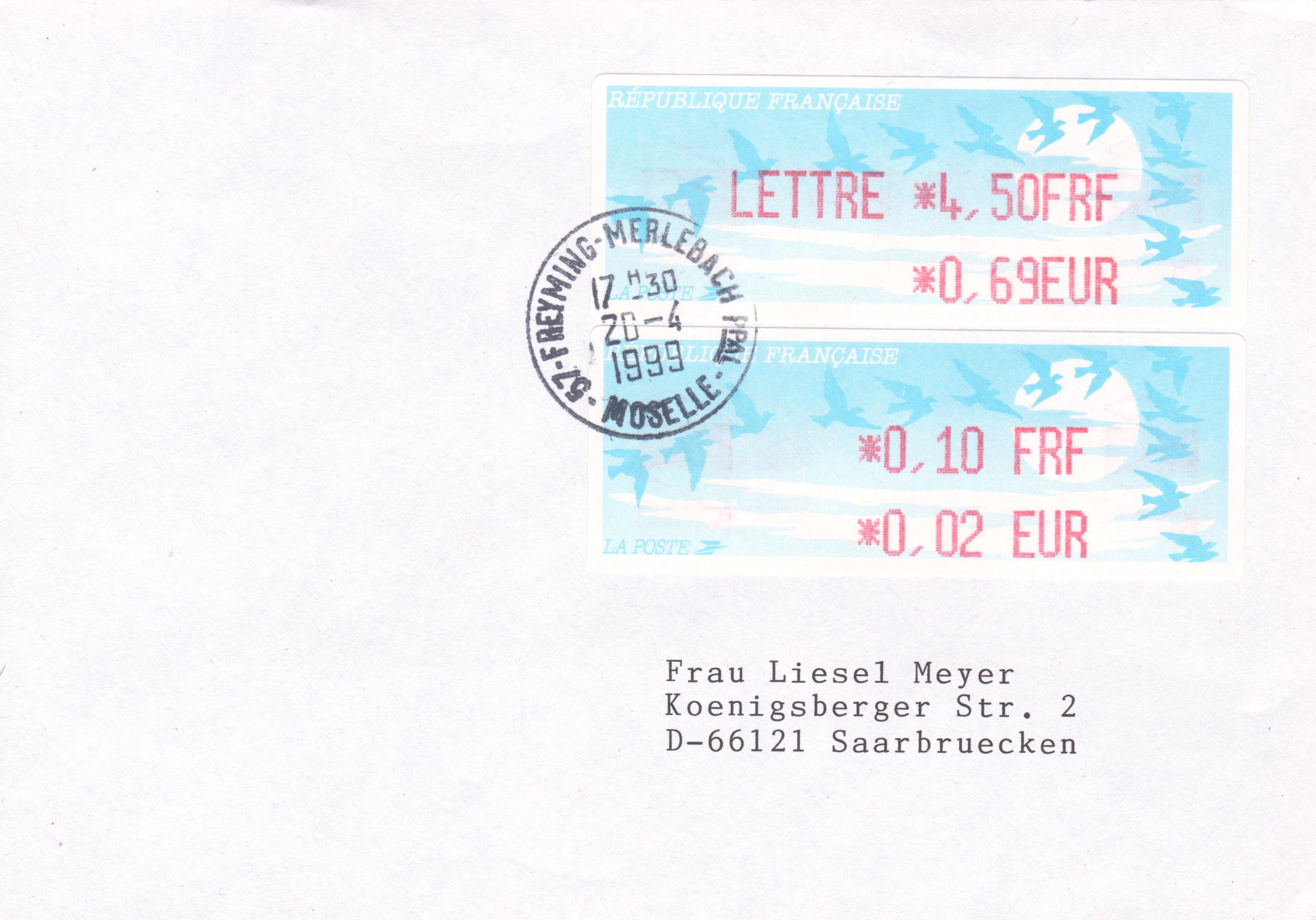 Frankreich ATM MiNr. 20 erschien am 23.03.2001 zum philatelistischen Frühlingssalon in Nancy:
