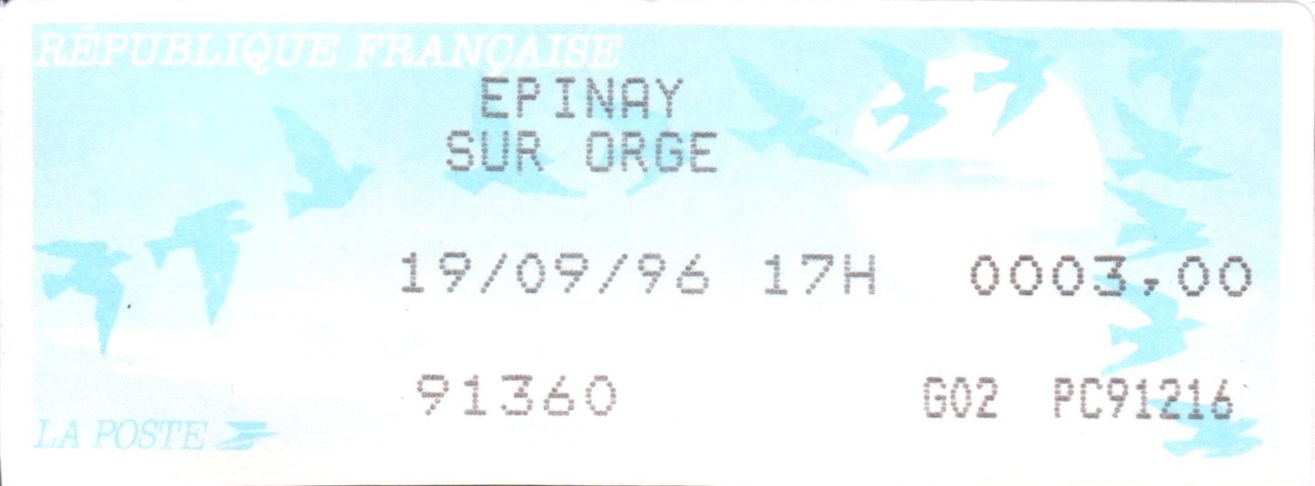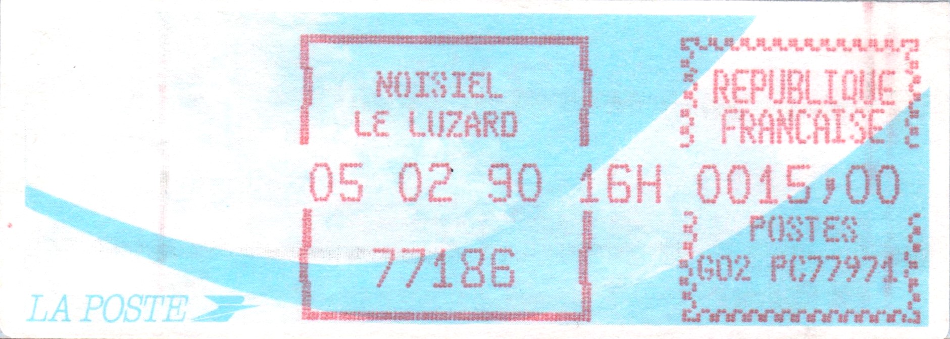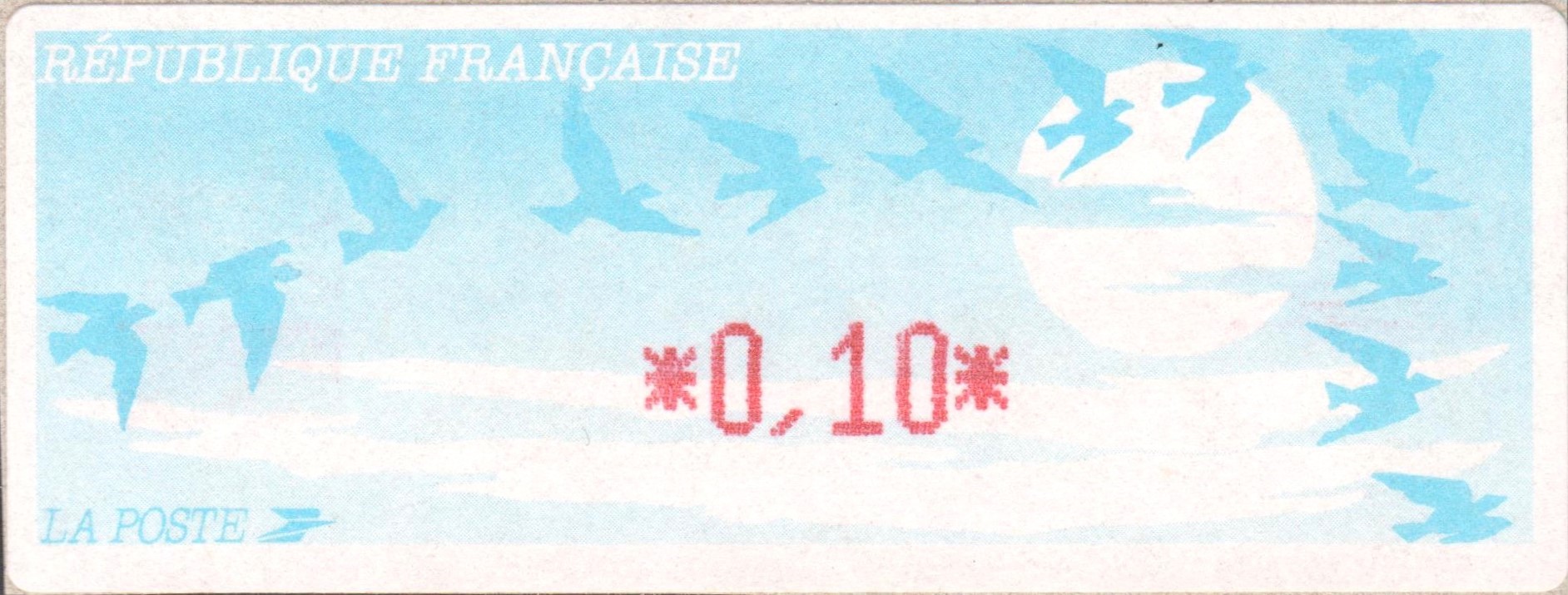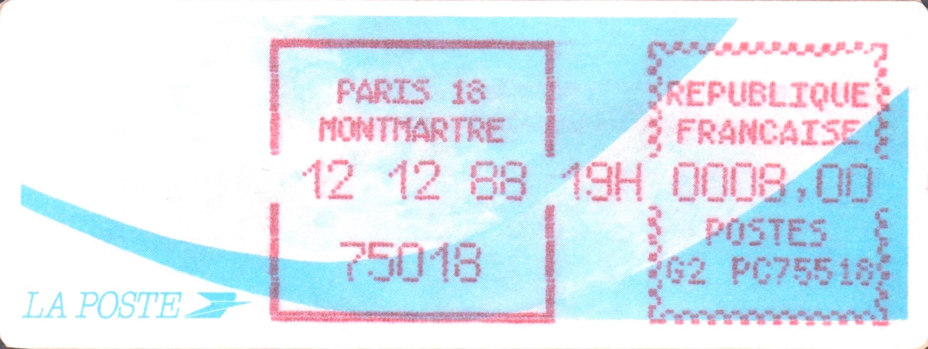 Frankreich 1990, Automatenmarke Type 11 II postfrisch sowie die dazu möglichen Varianten der Quittung aus dem Automaten, die je nach gewählter Bedienungssprache vom Automaten in 5 verschiedenen Sprachen ausgedruckt wurde!