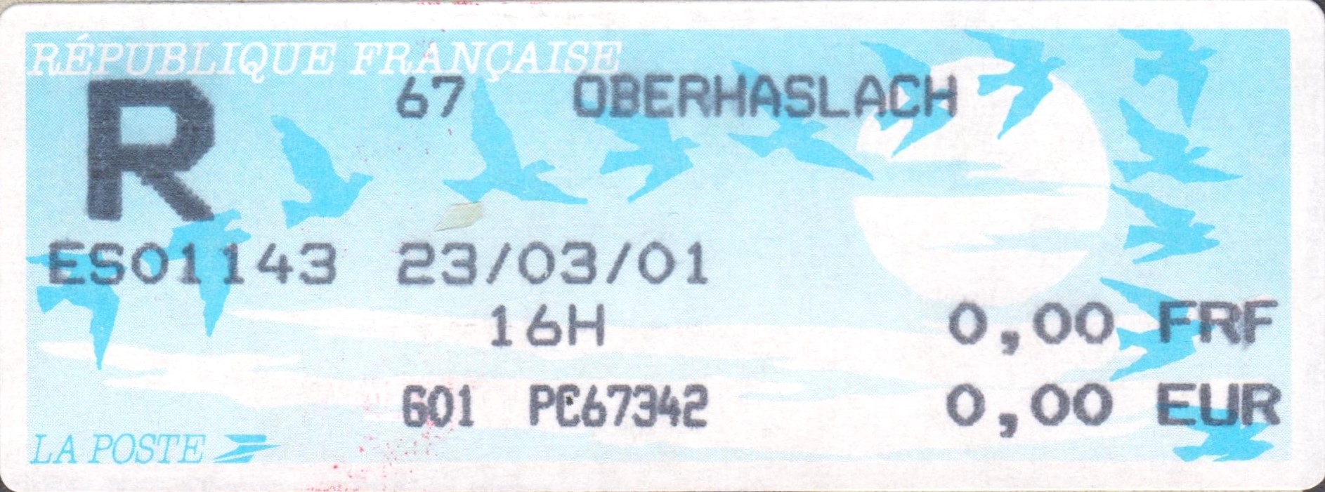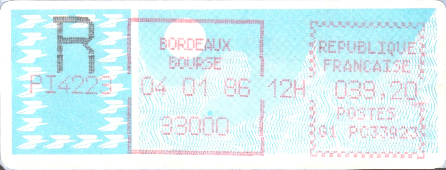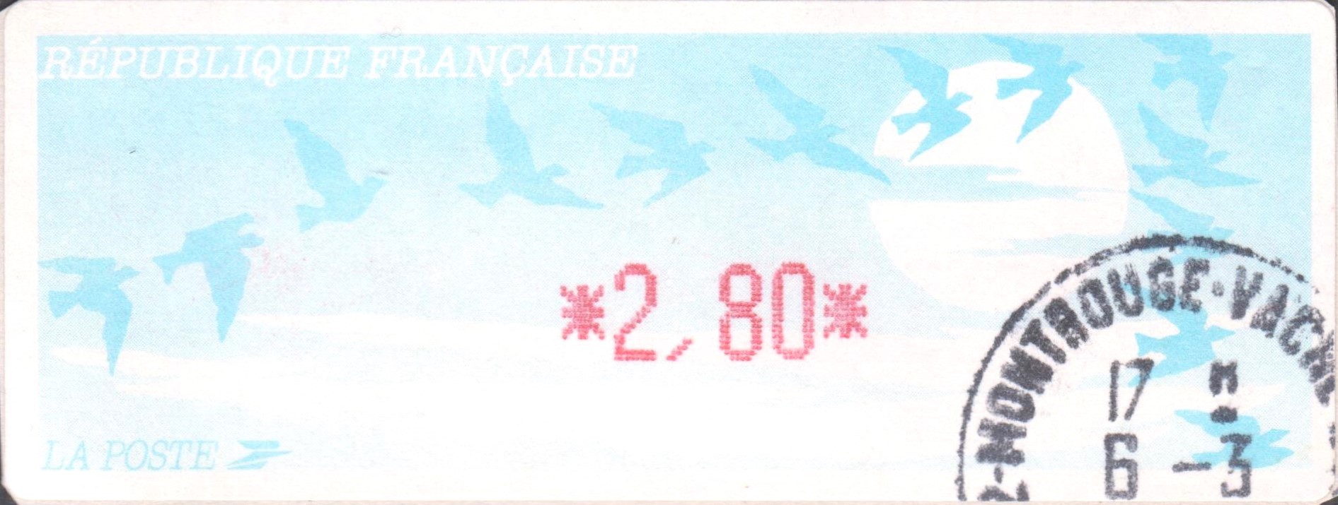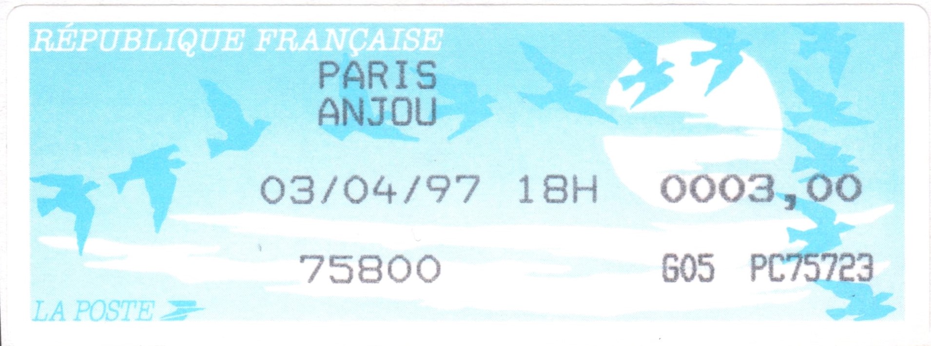Frankreich 1990, Automatenmarke Type 11 II postfrisch sowie die dazu möglichen Varianten der Quittung aus dem Automaten, die je nach gewählter Bedienungssprache vom Automaten in 5 verschiedenen Sprachen ausgedruckt wurde!