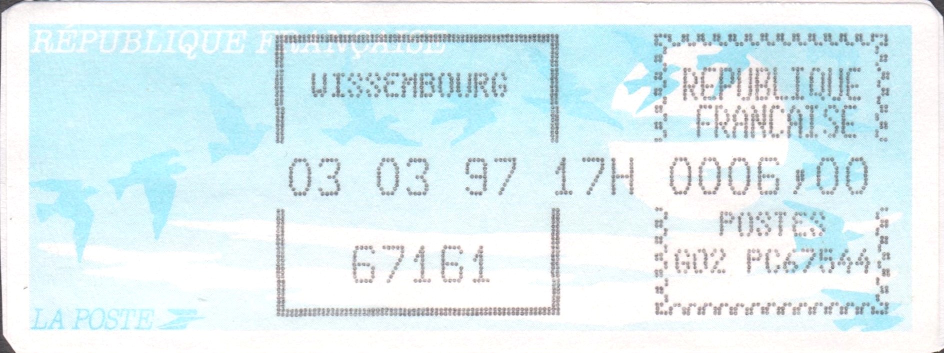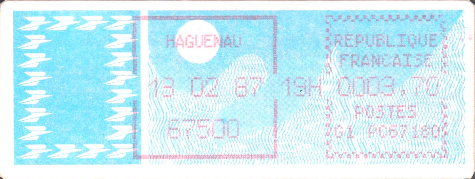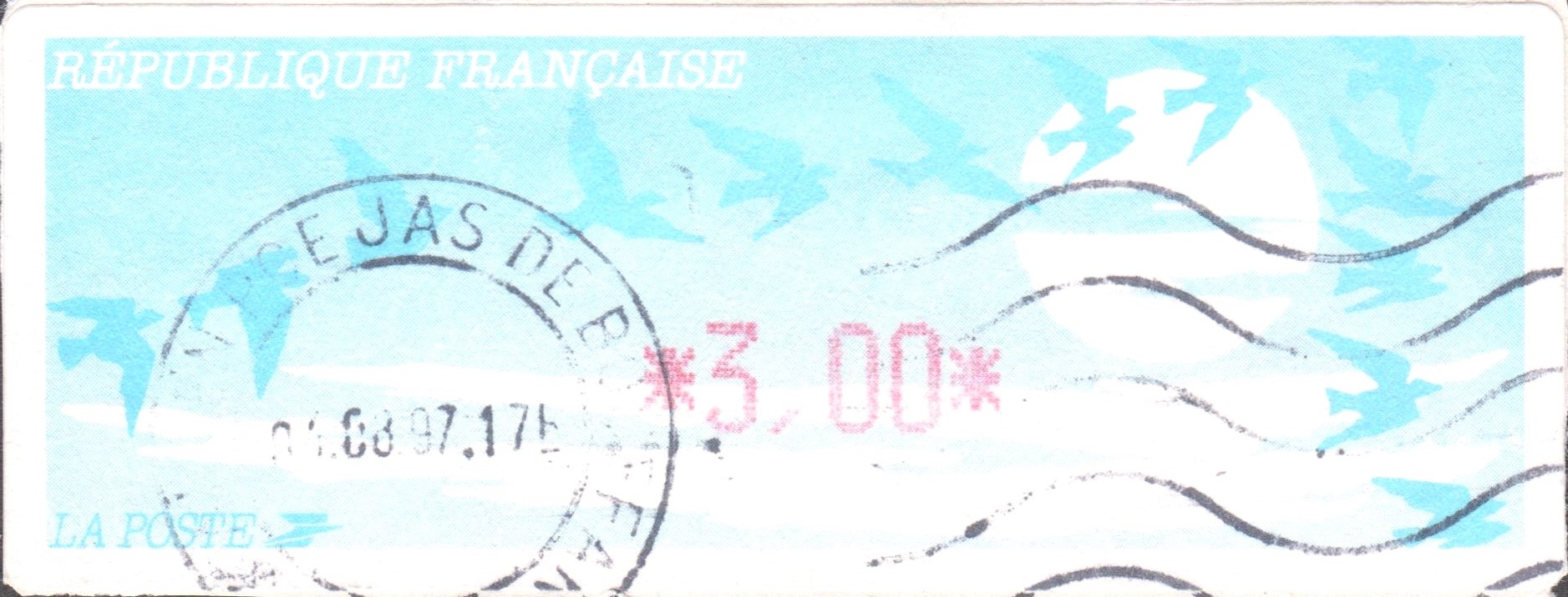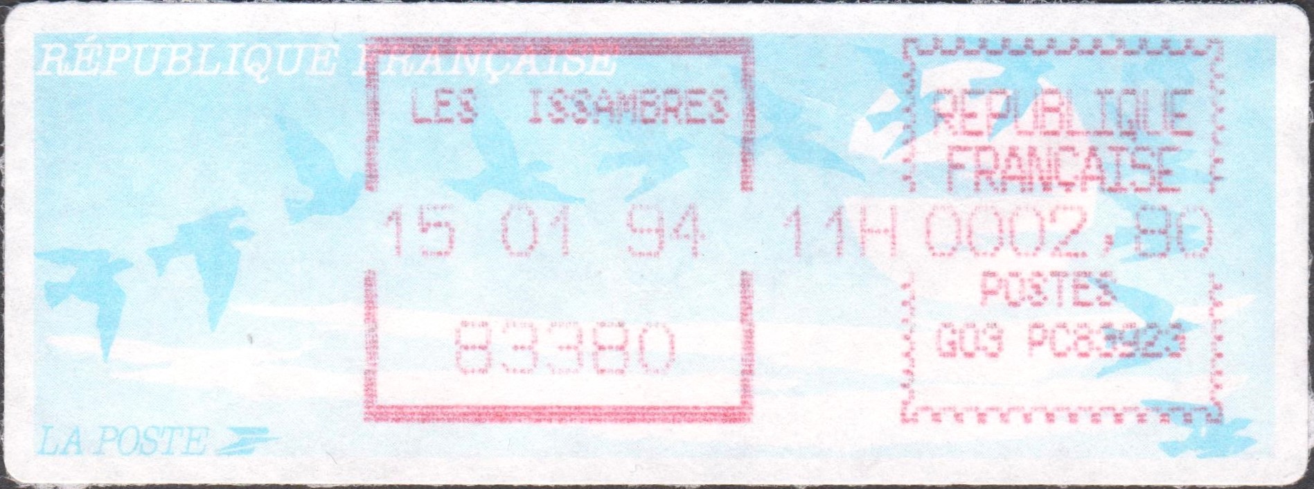 Frankreich 1990, Automatenmarke Type 11 II postfrisch sowie die dazu möglichen Varianten der Quittung aus dem Automaten, die je nach gewählter Bedienungssprache vom Automaten in 5 verschiedenen Sprachen ausgedruckt wurde!