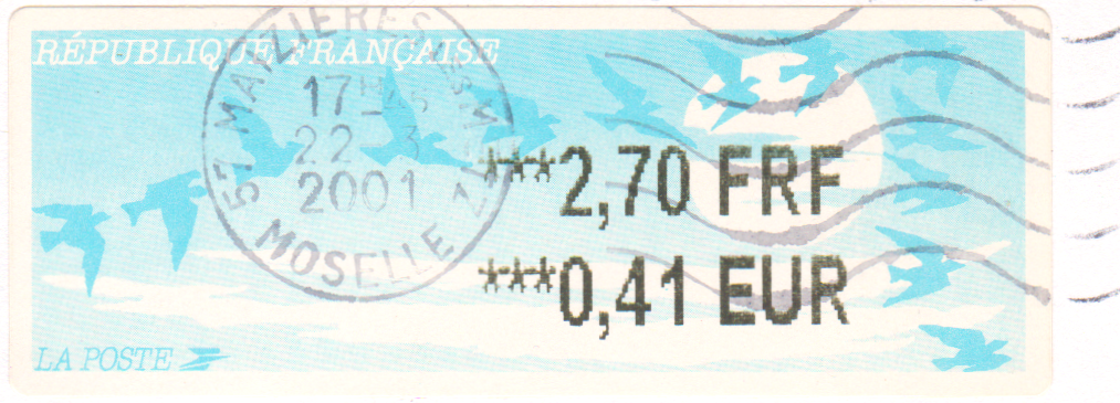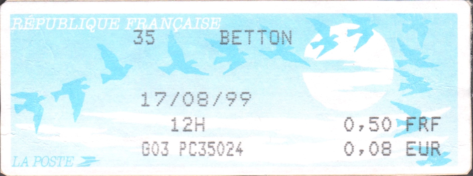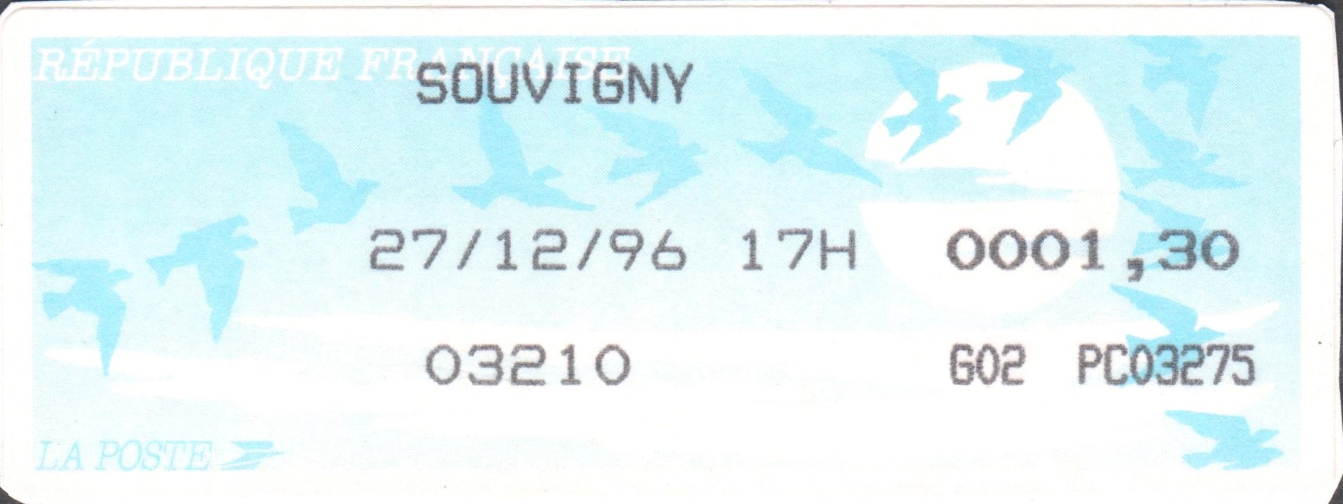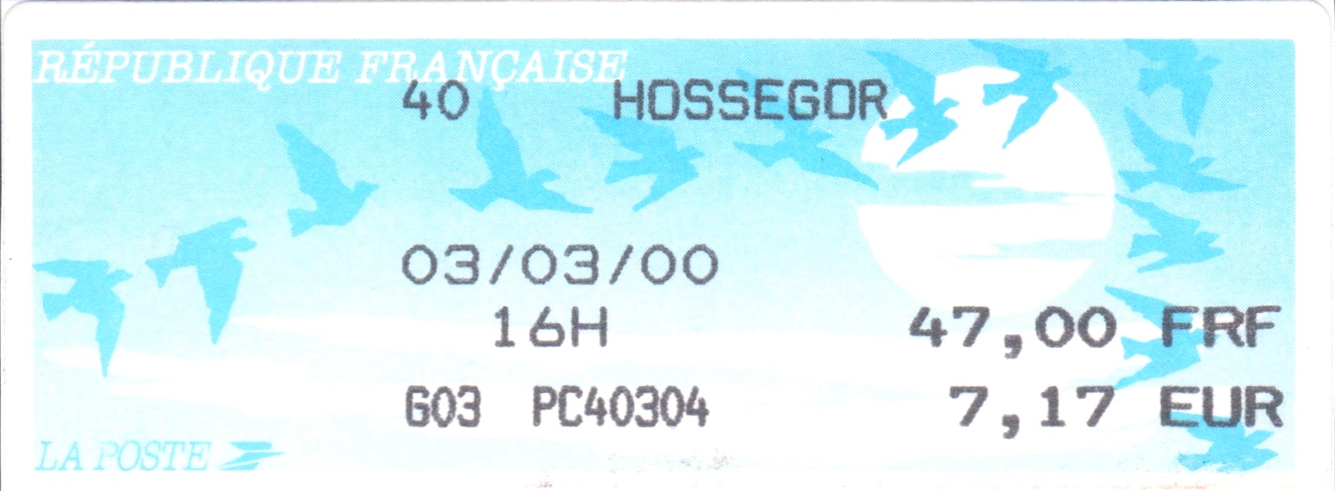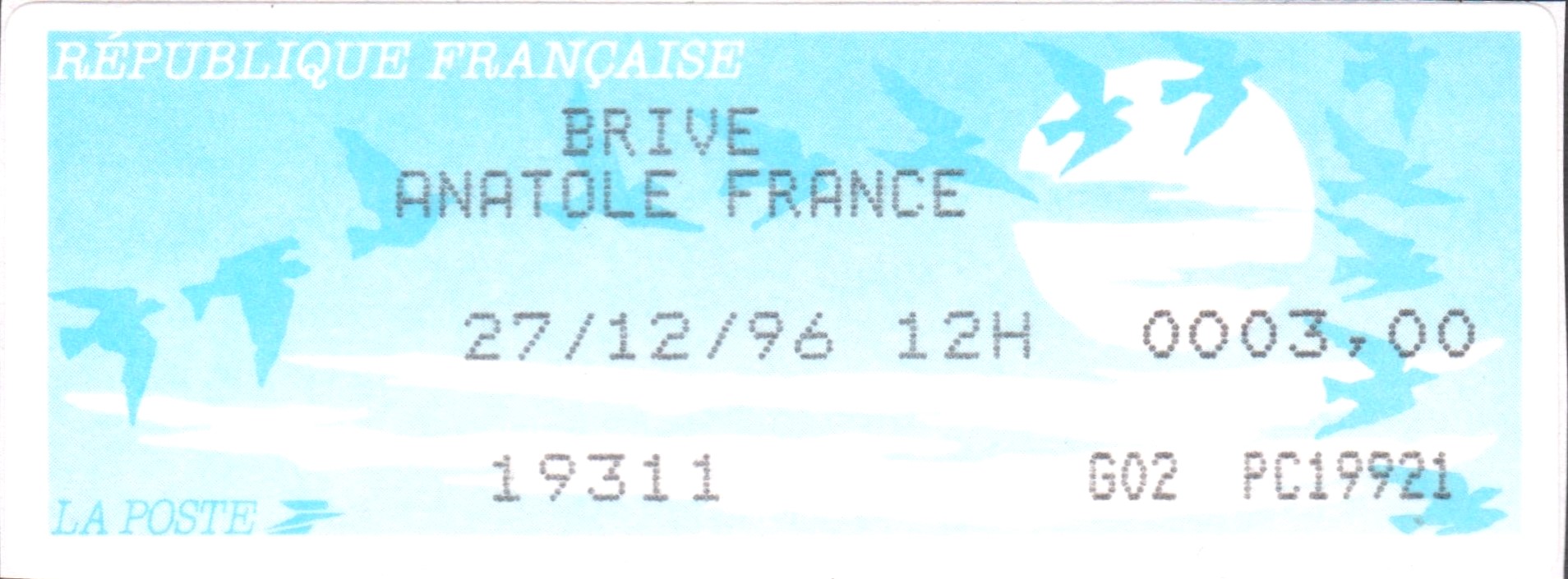 Frankreich 1990, Automatenmarke Type 11 II postfrisch sowie die dazu möglichen Varianten der Quittung aus dem Automaten, die je nach gewählter Bedienungssprache vom Automaten in 5 verschiedenen Sprachen ausgedruckt wurde!