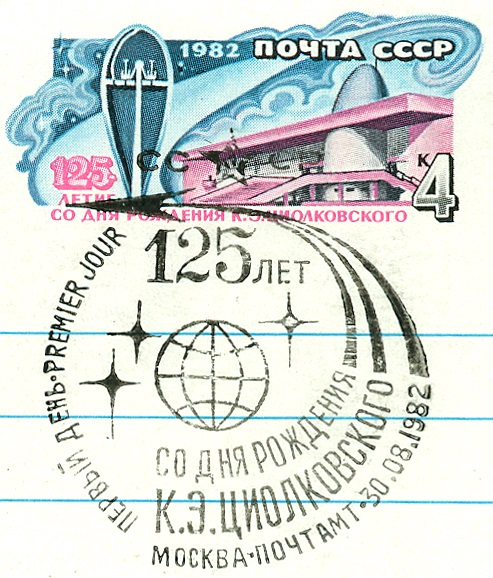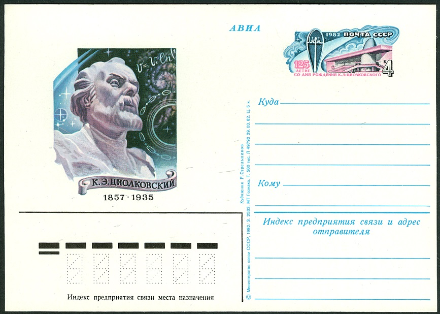 Als erste dieser so mannigfaltig gestalteten CCCP-Ganzsachen-Ausgaben, möchte ich -endlich- mit einer personenbezogenen Postkarte beginnen. Sie ist dem 125. Geburtstag von K. E. Ziolkowski (1857 - 1935) gewidmet.