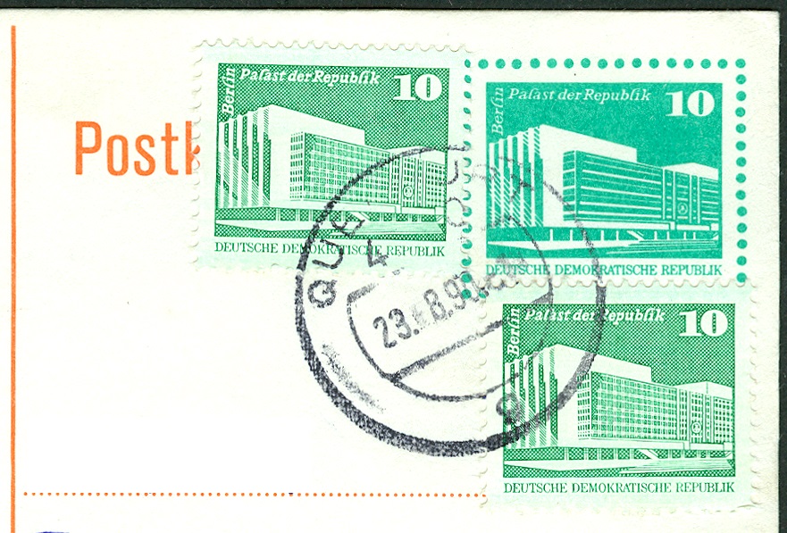 Und der Wertstempel der P 89 mit dem markierten üblichen Trennstrichende vor dem Kartenrand.