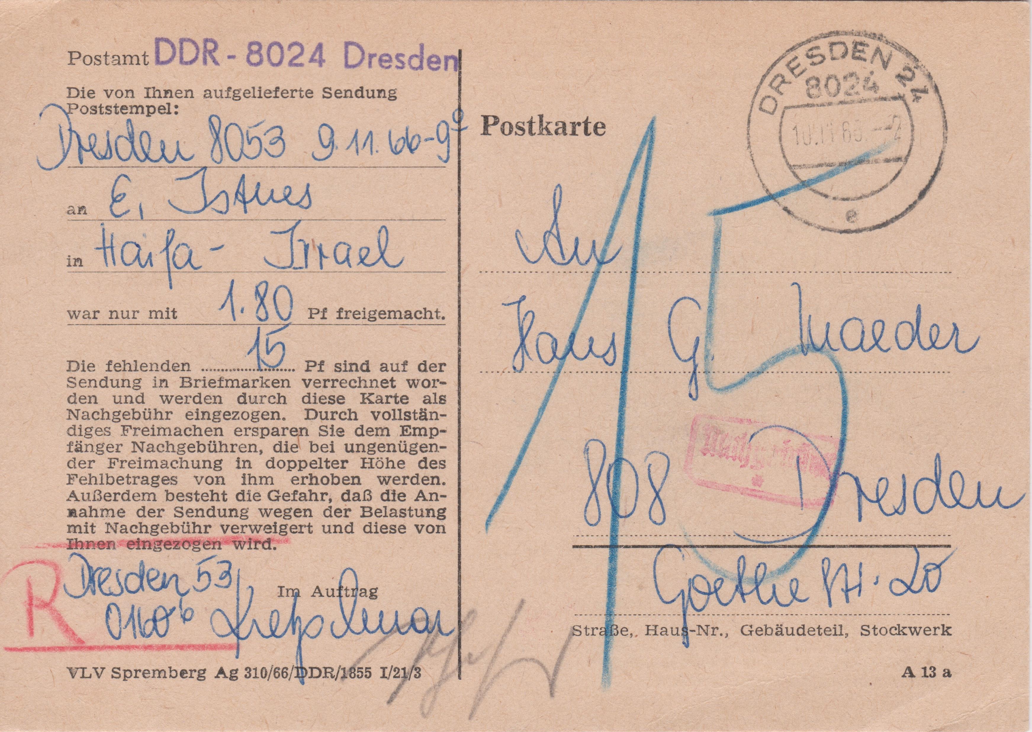 Interessanter Vordruck "Postkarte", verwendet vom Postant DDR - 8024 DRESDEN 24: