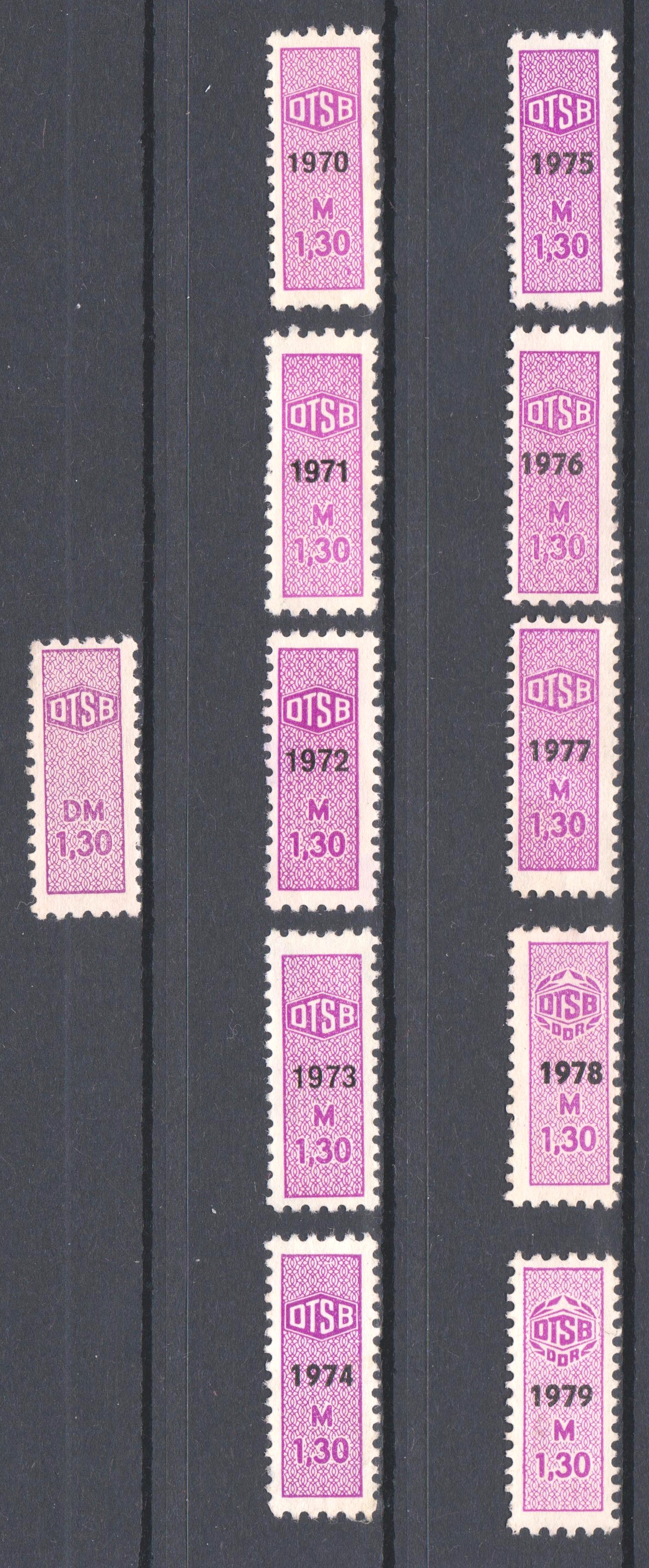 Der DTSB = Deutscher Turn- und Sportbund gab für seine Mitglieder Beitragsmarken wie diese heraus: