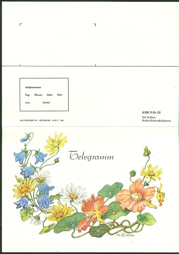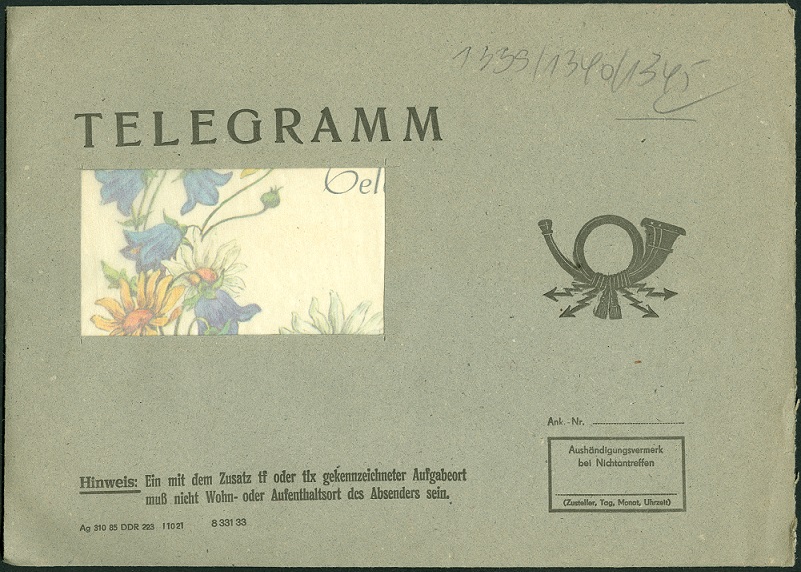 Das gewöhnliche Telegramm, eingeklebt in das ausgewählte LX-Formular, wurde in einen A5-Umschlag gesteckt und zugestellt. Über den Schmuckwert eines solchen Umschlages sollte es sicher unterschiedliche Auffassungen geben.