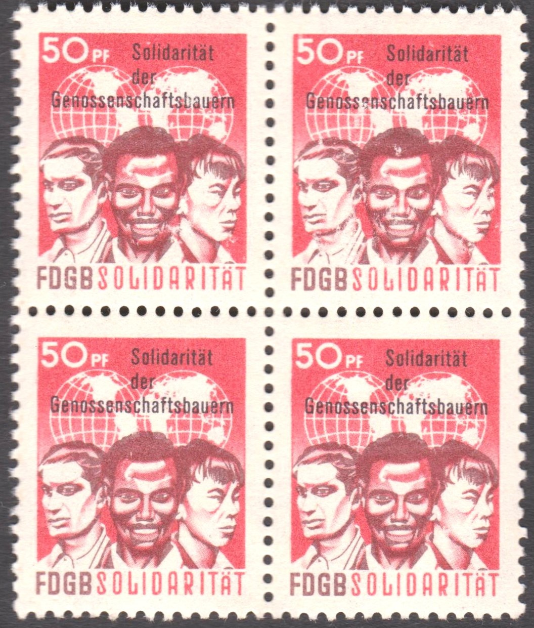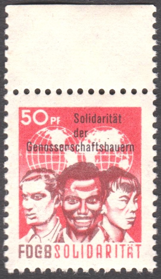 Oberrandstück der Wertstufe 50 Pf mit Aufdruck "SOLIDARITÄT DER GENOSSENSCHAFTSBAUERN":