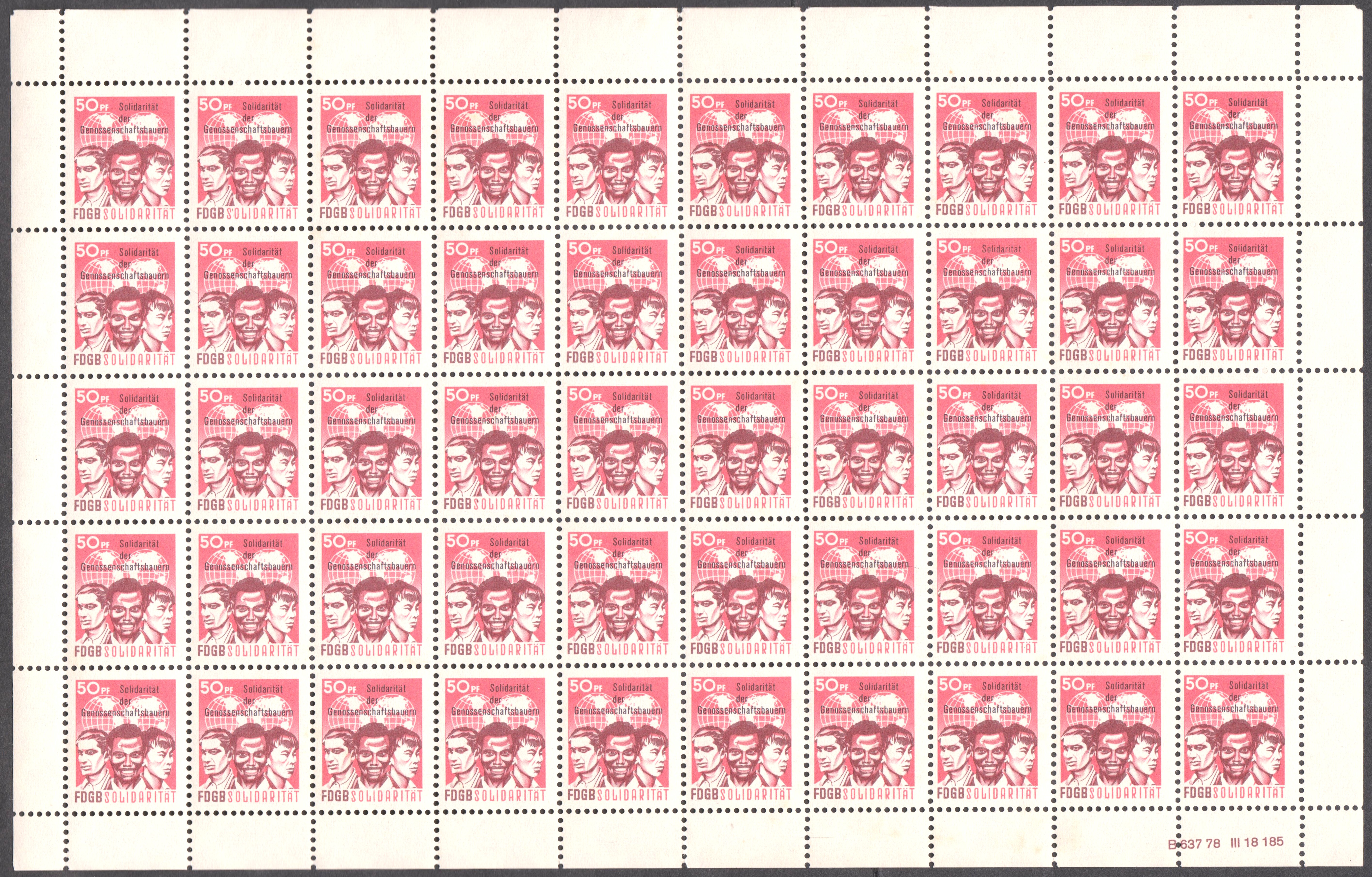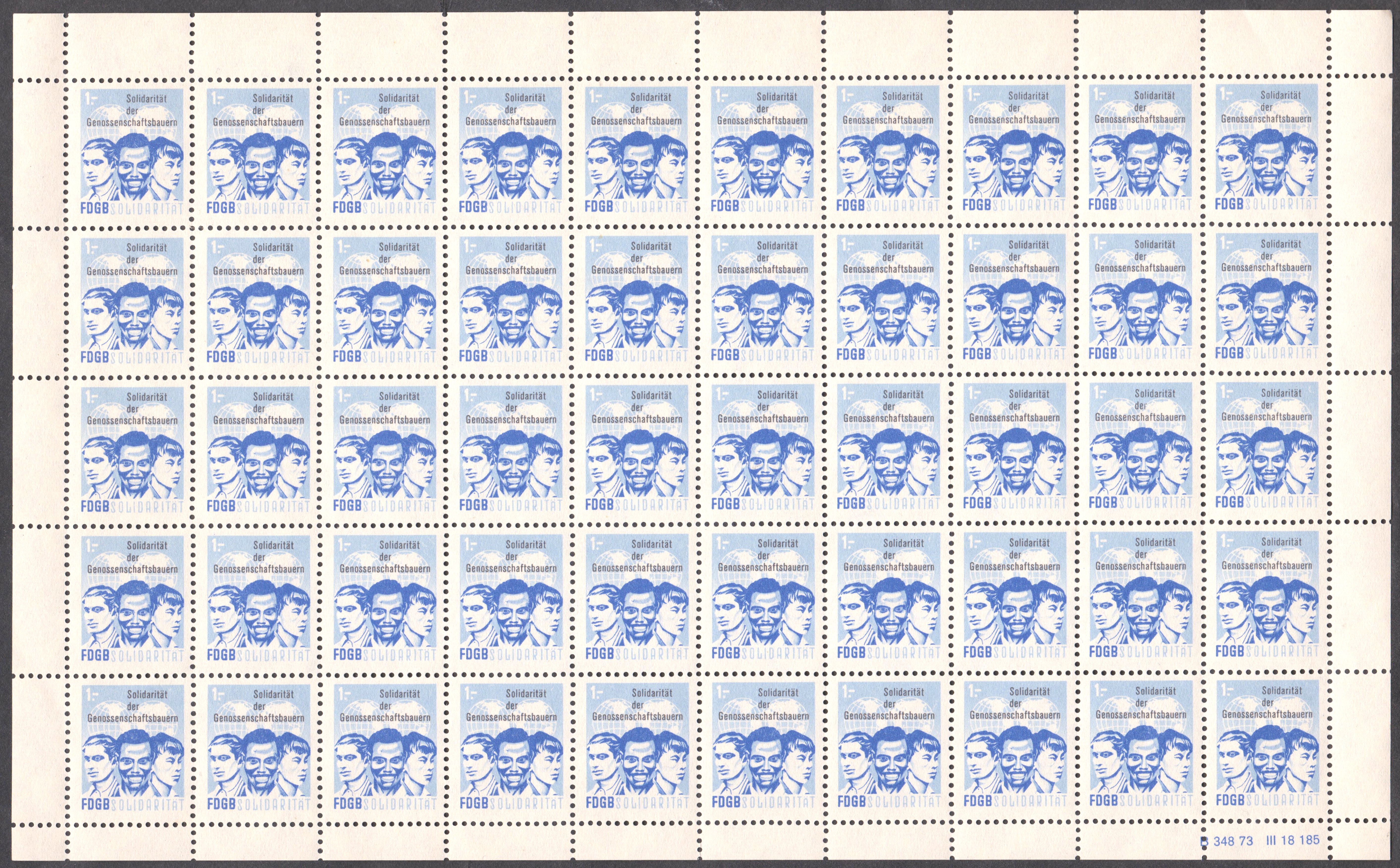 Die FDGB SOLIDARITÄTSMARKEN wurden im Bogen 10 x 5 gedruckt.