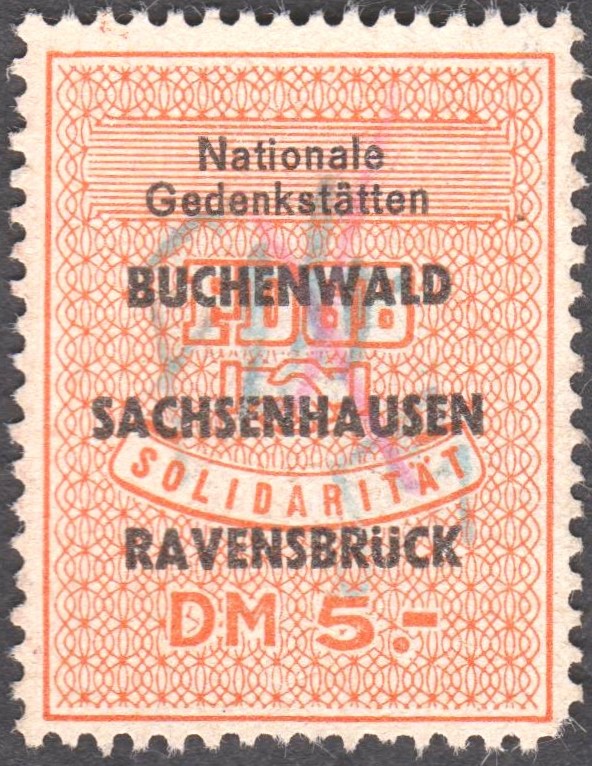 Spendenmarke DM 5.-, 1955, NATIONALE GEDENKSTÄTTEN BUCHENWALD SACHSENHAUSEN RAVENSBRÜCK: