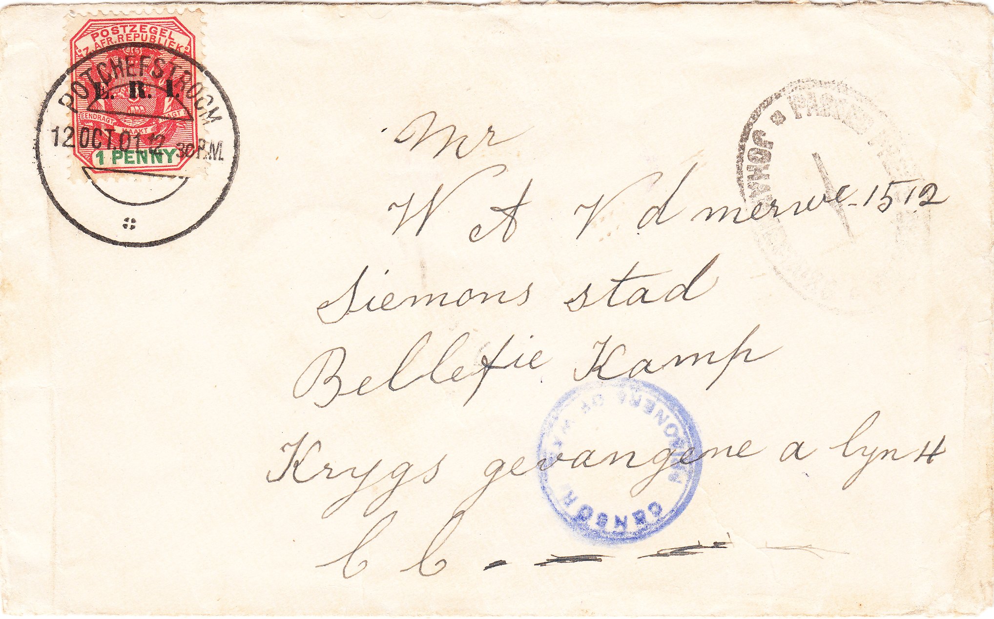 Die Post dieser Kriegsgefangenen Buren wurde von den Briten zensuriert, worauf Stempel hinweisen. Somit praktizierten die Briten während des Burenkrieges erstmals eine offiziell organisierte Postzensur mit Kennzeichnung aller zensurierten Sendungen durch Stempel.
