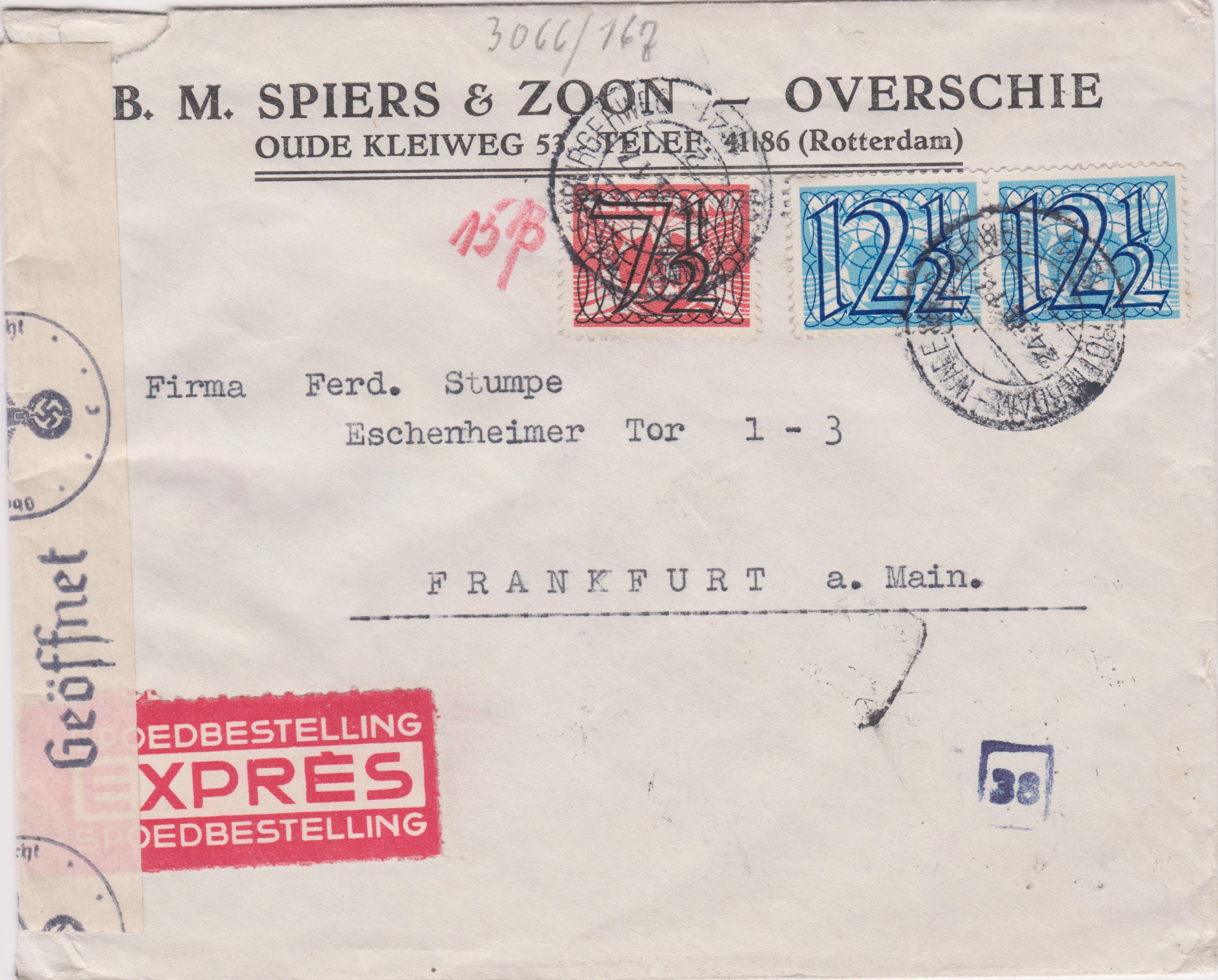 Expressbrief aus Rotterdam, aufgegeben am 24.02.1941, adressiert nach Frankfurt am Main: