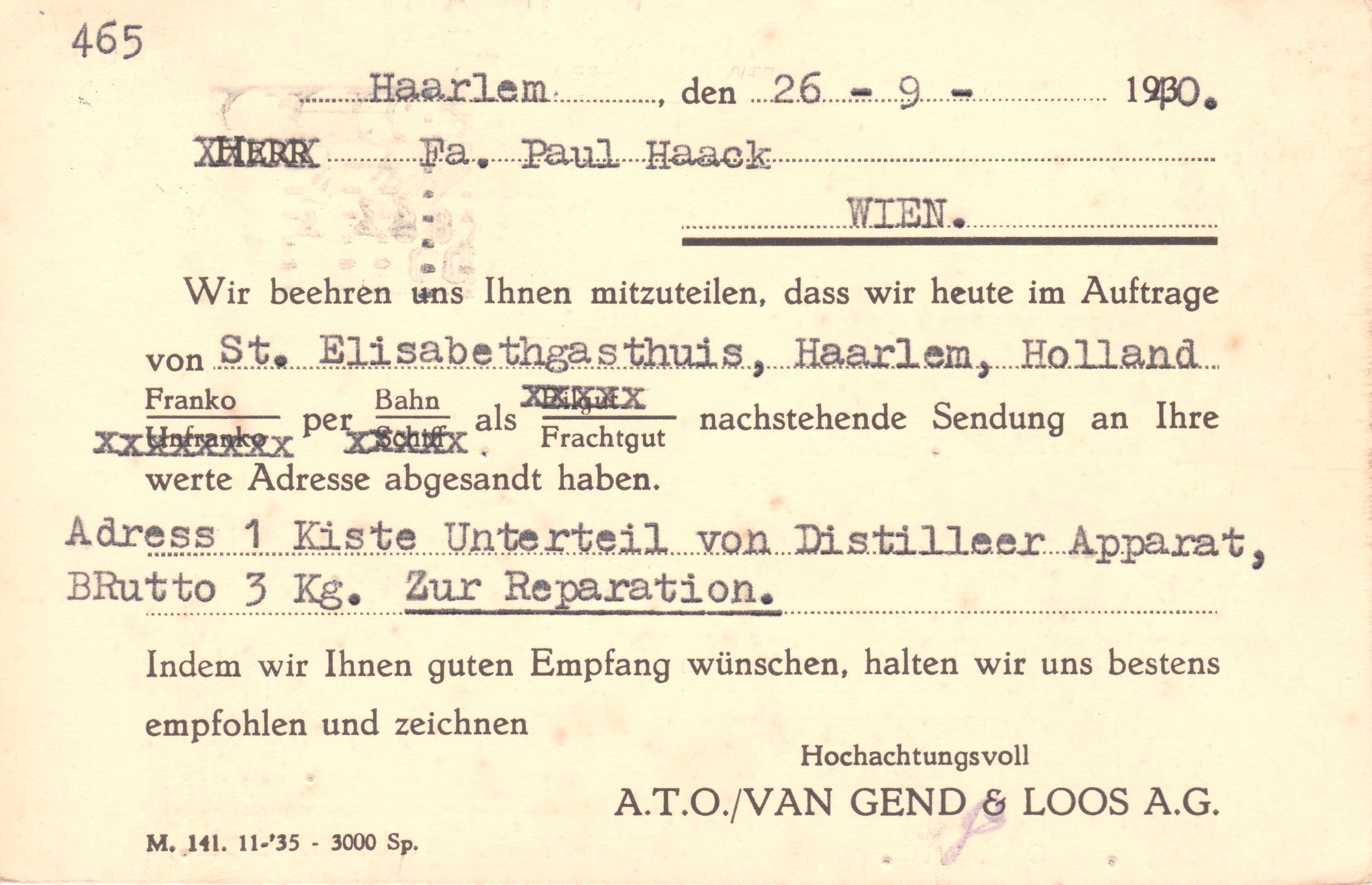 An seinem Bestimmungsort Rotterdam erwies sich dieser Beleg als nicht zustellbar und wurde an den Absender zurückgeleitet!