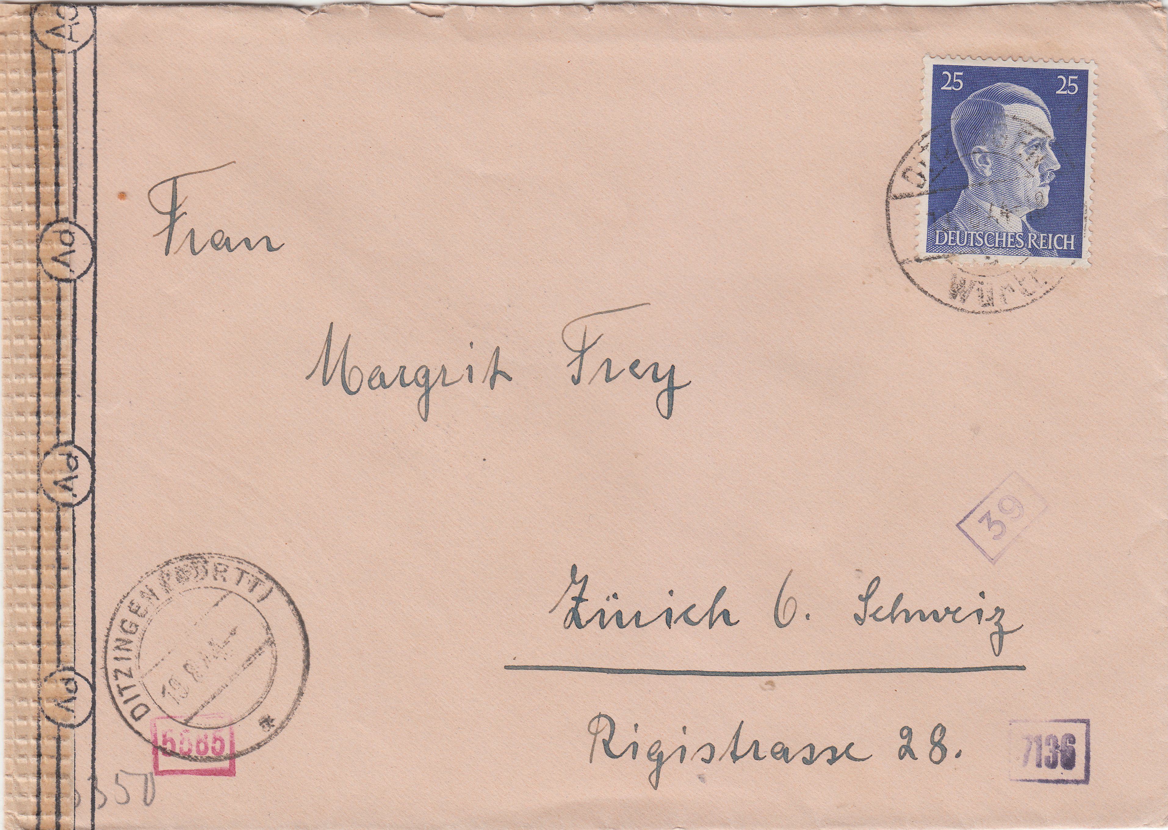 Am 15.12.1944 kam der Brief dann schließlich an seinem Bestimmungsort PFÄFFIKON (SCHWYZ) an, also einen geschlagenen Monat nach erfolgter erster Briefaufgabe!