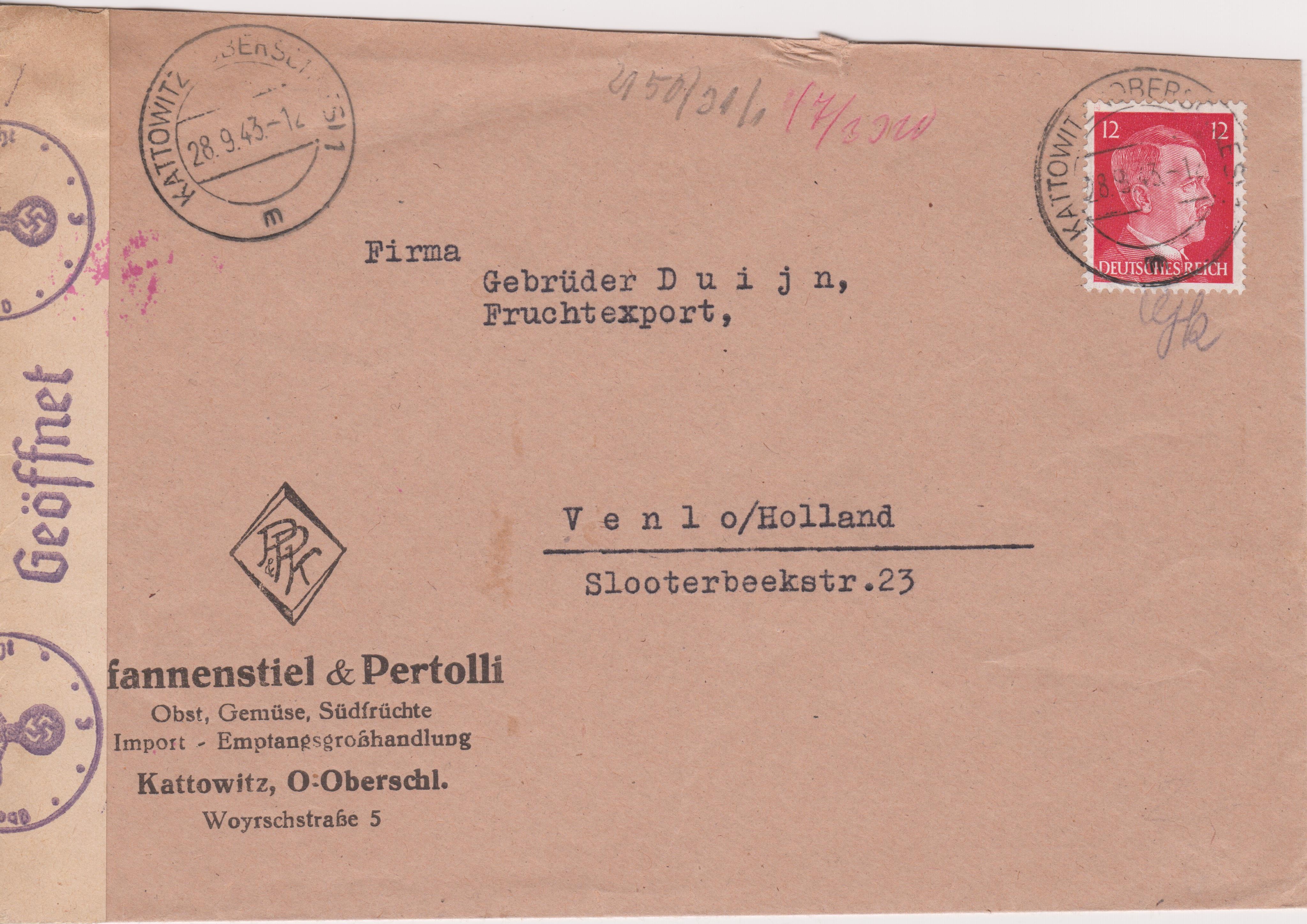 Brief, frankiert per EF 12 Pf Dauerserie Adolf Hitler, adressiert nach "Heems Aede Holland", aufgegeben am 26.05.1943 in FRIELINGSDORF: