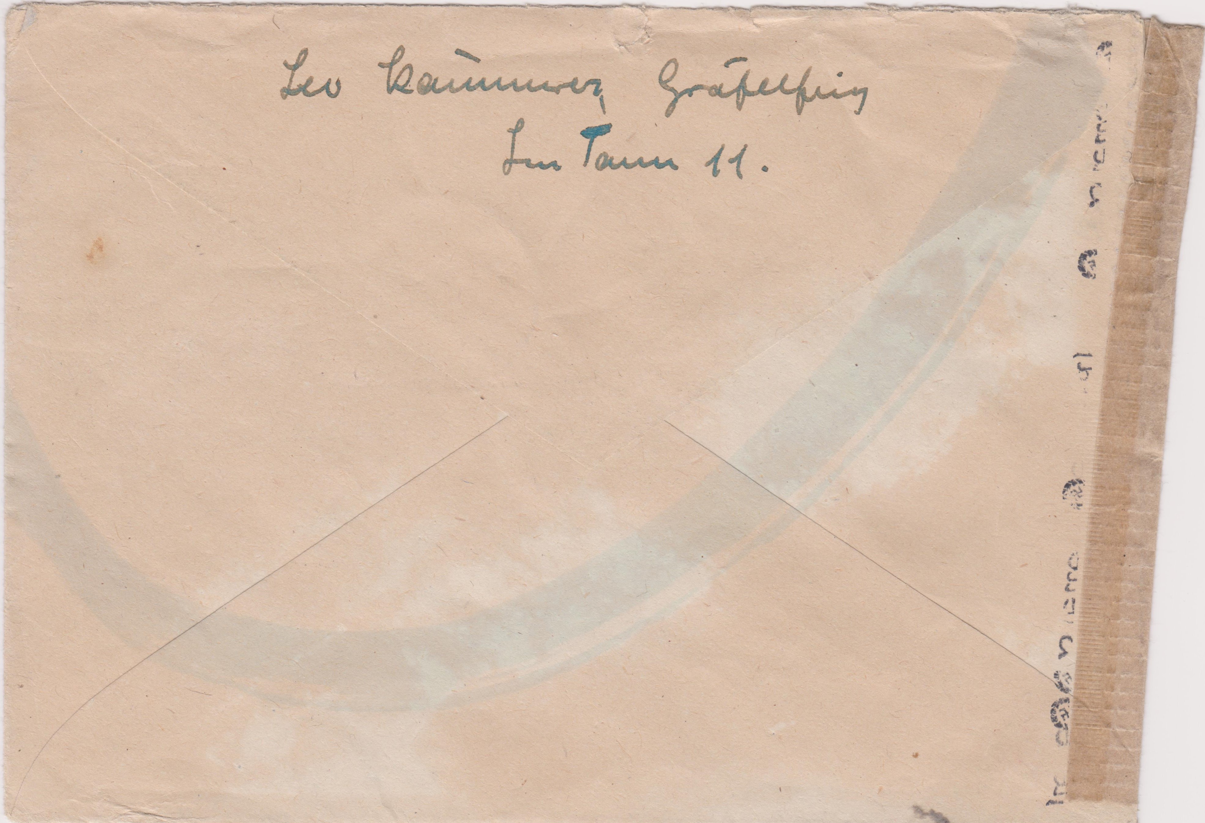 Der Brief wurde der ABP München zugeleitet, wo ein Prüfstempel in Rot "Zensurstelle", Doppelraute neben Adler, Landsmann DP4.7, abgeschlagen wurde.