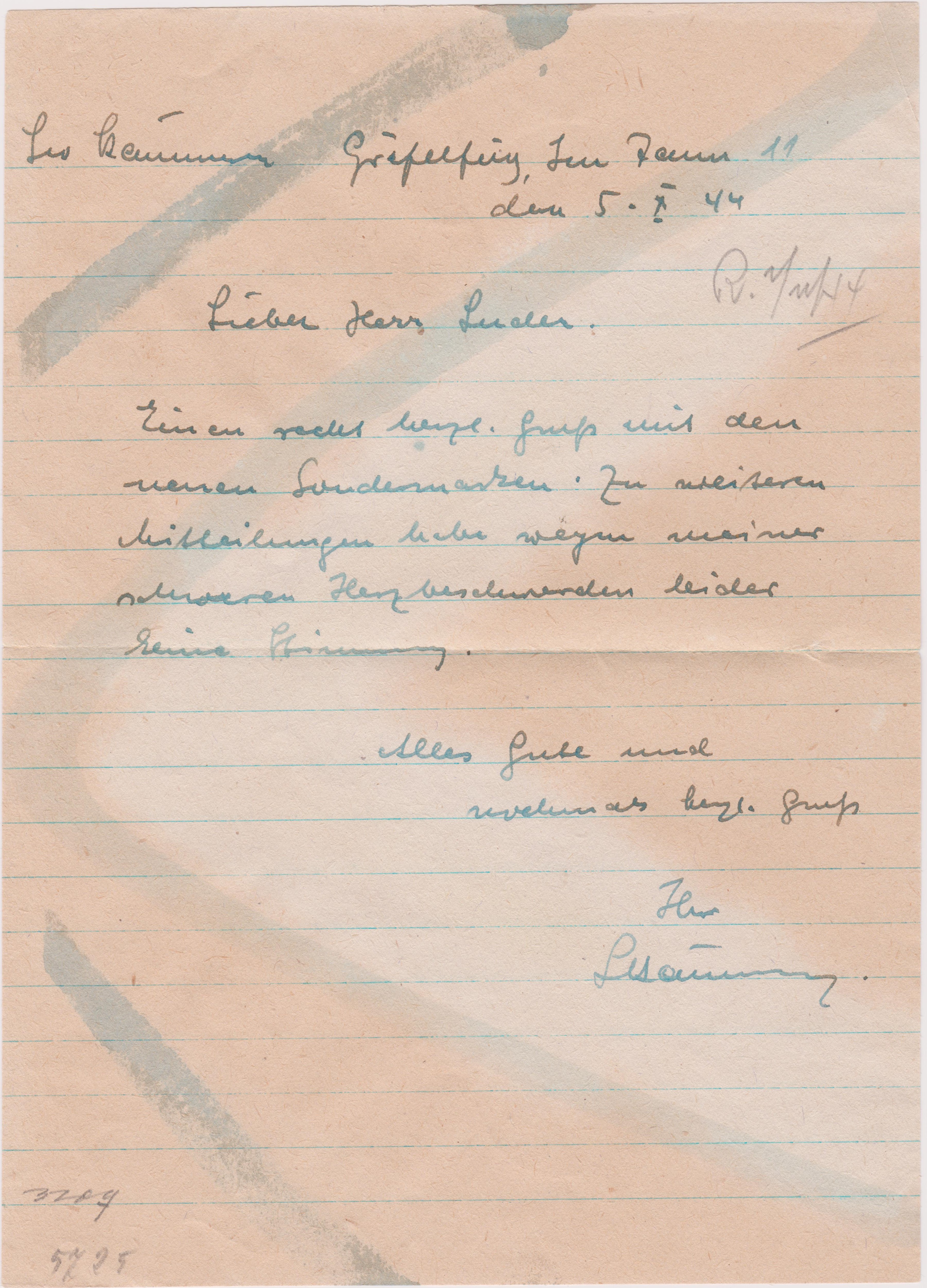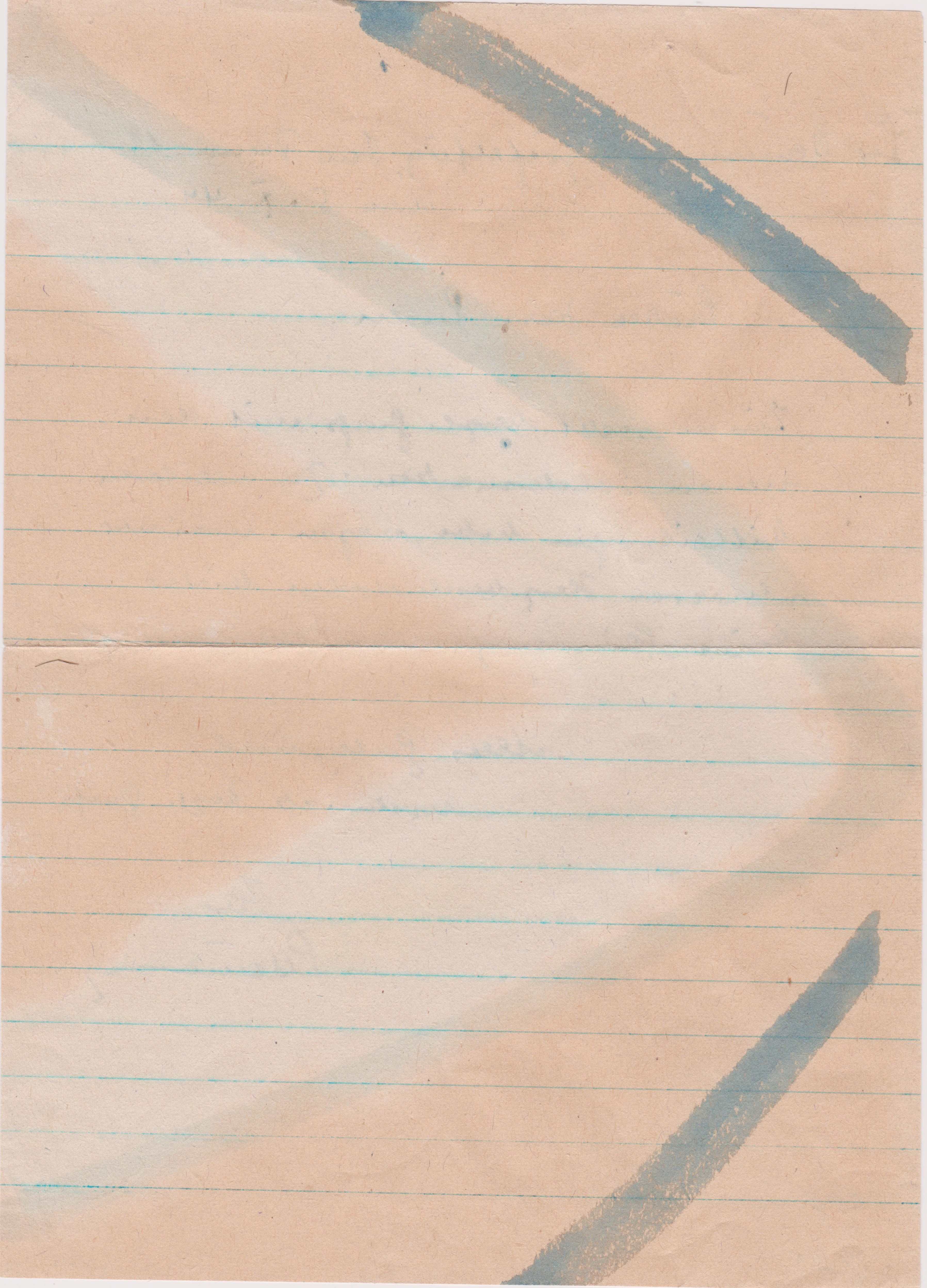 Als chemische Zensur wurde der einmal senkrecht gefaltete Briefbogen mit verdünnter blauer Tinte vorderseitig sowie rückseitig diagonal untersucht.