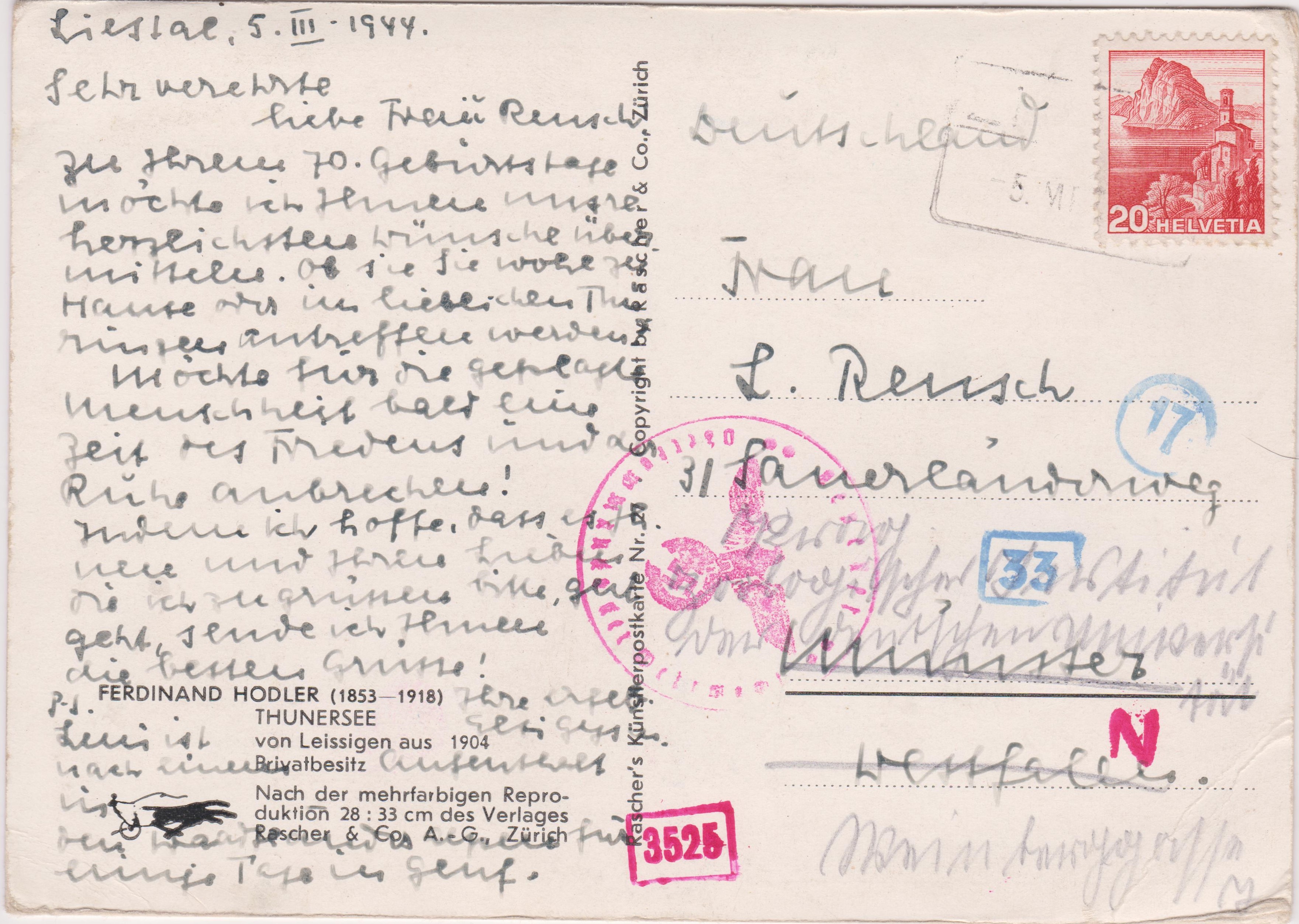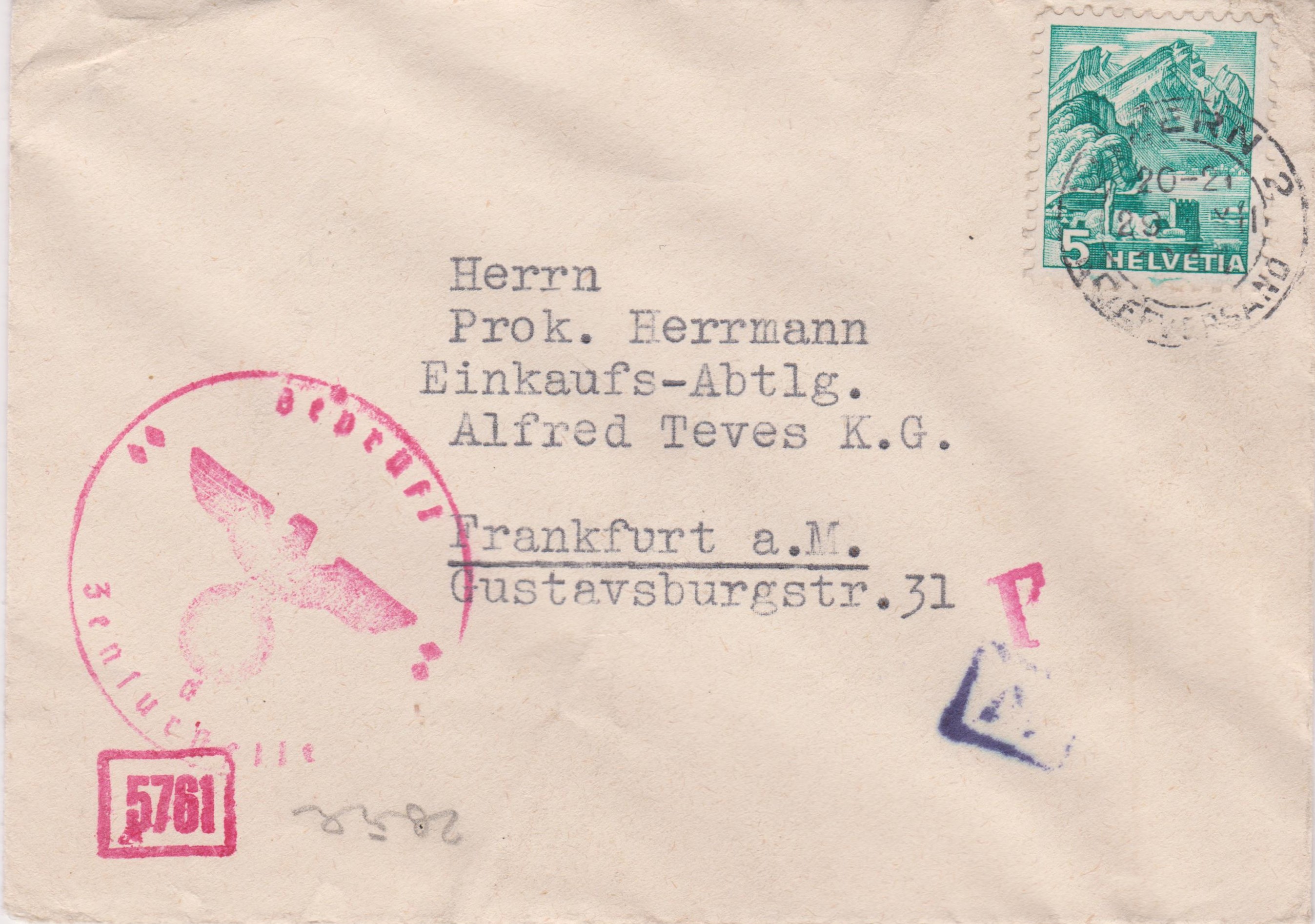 Brief nach Frankfurt am Main, aufgegeben in der Schweiz am 29.12.1944: