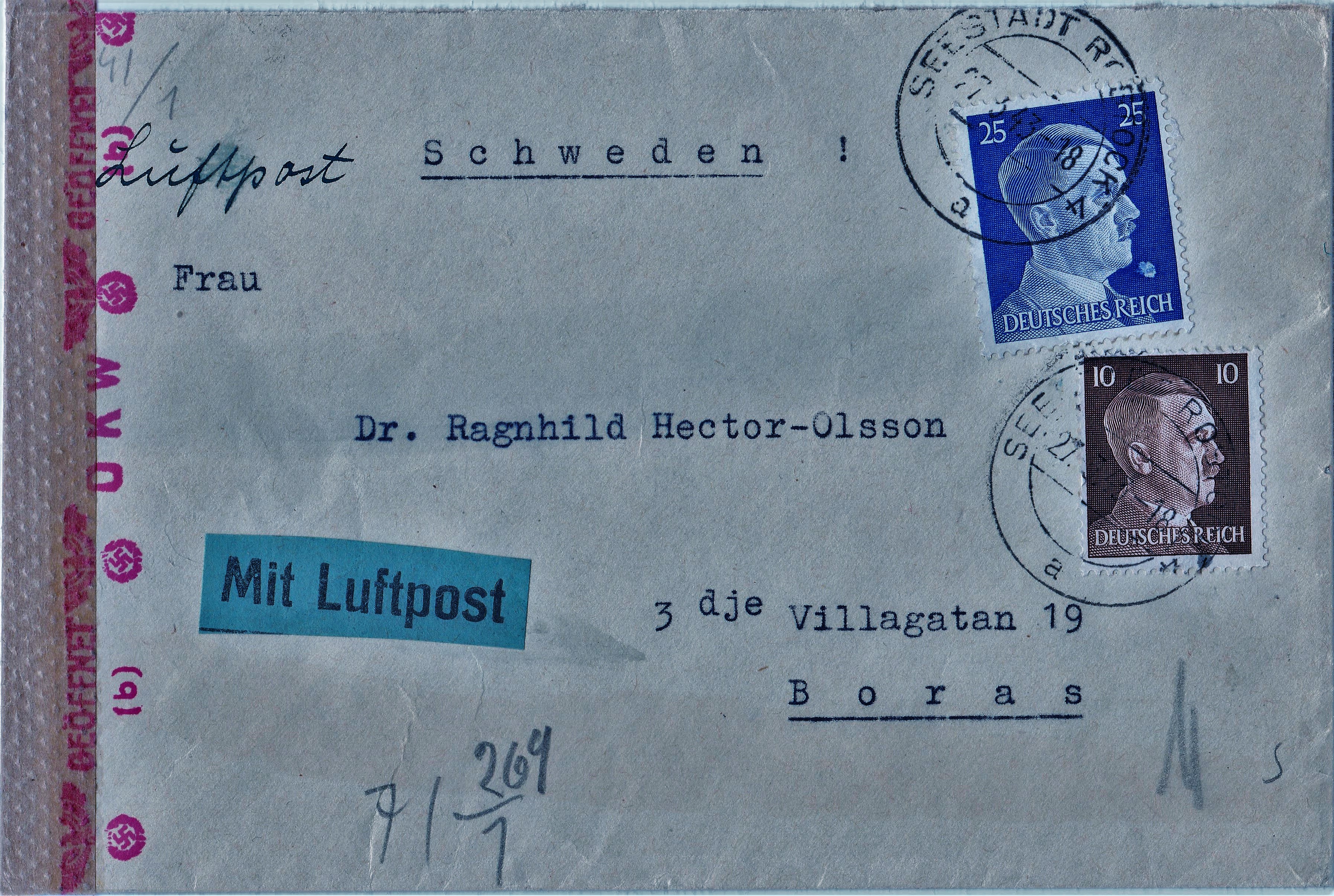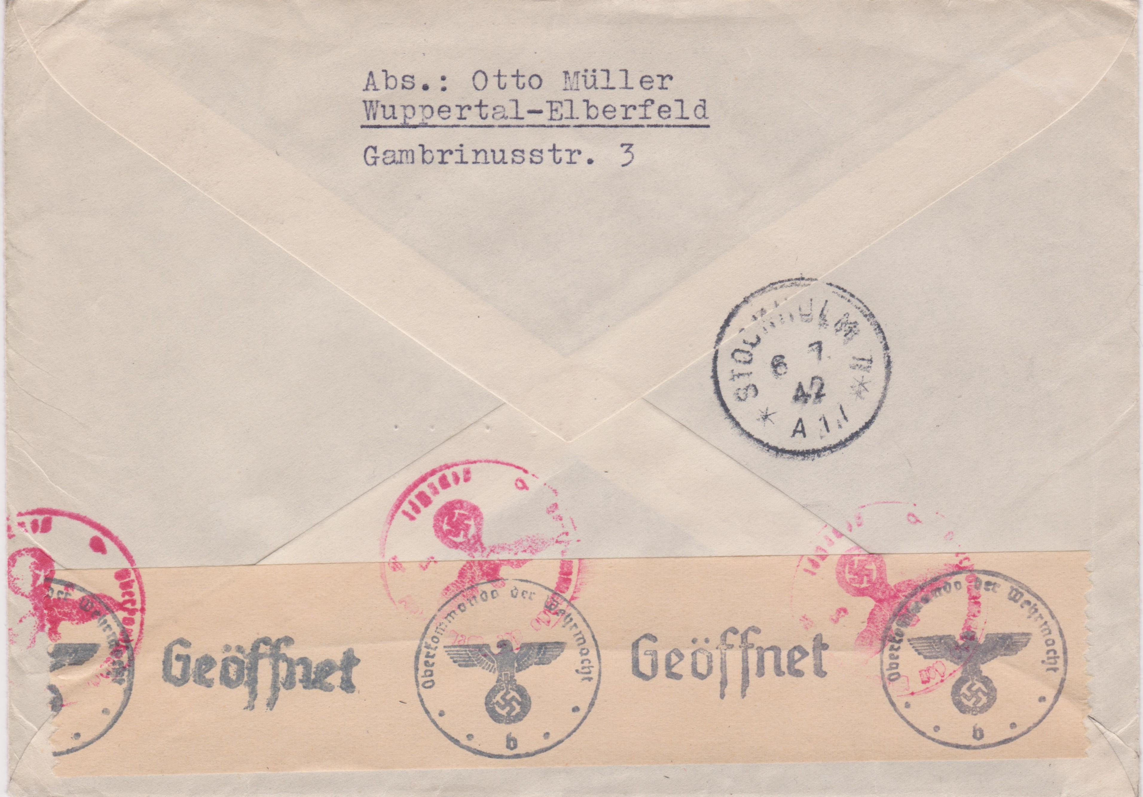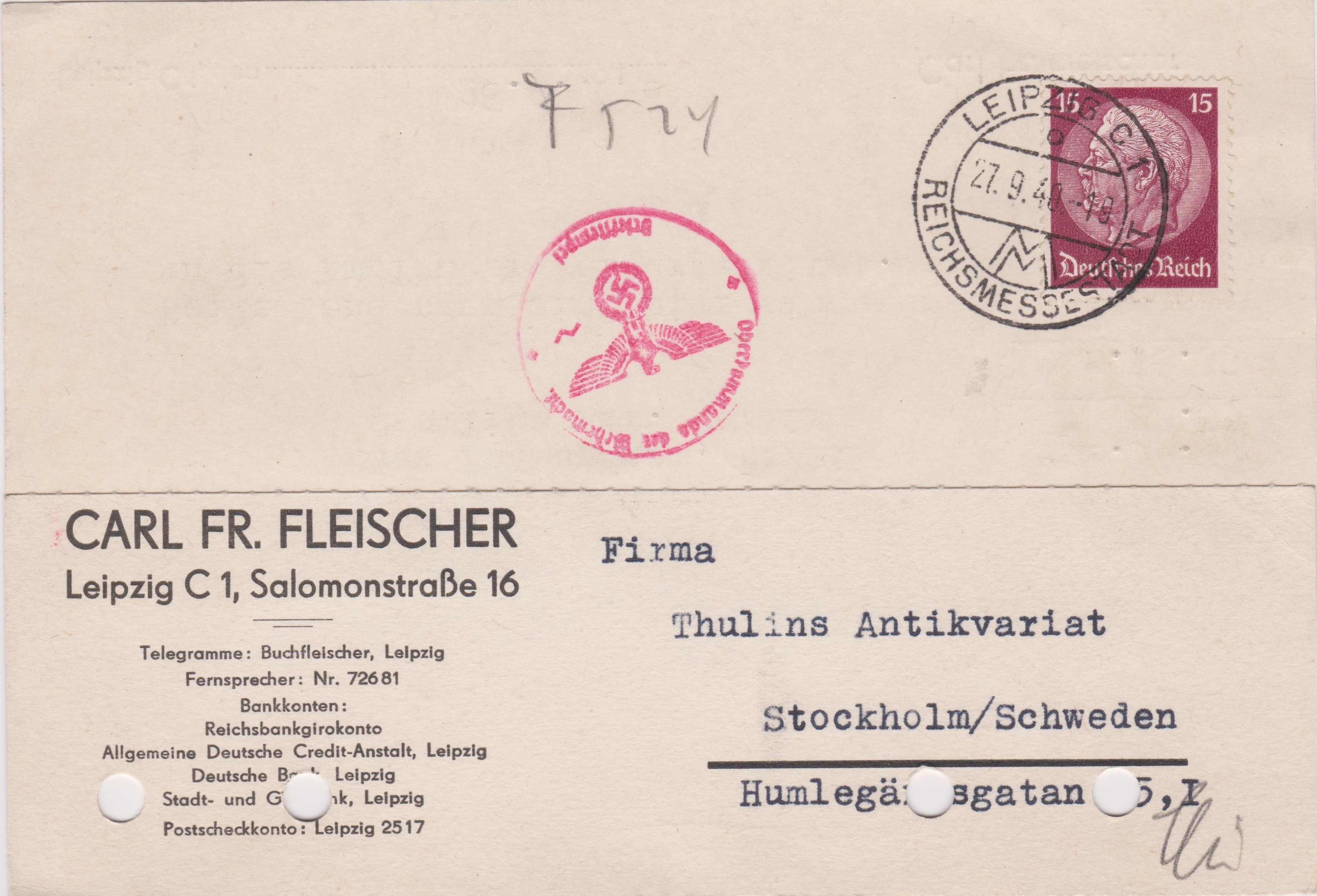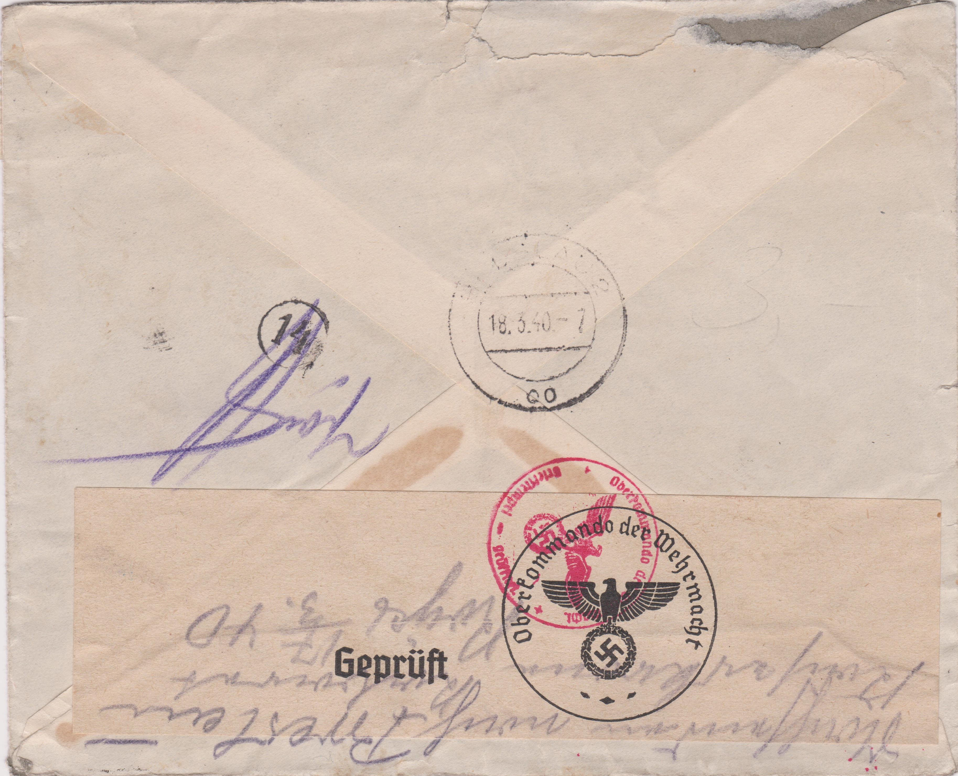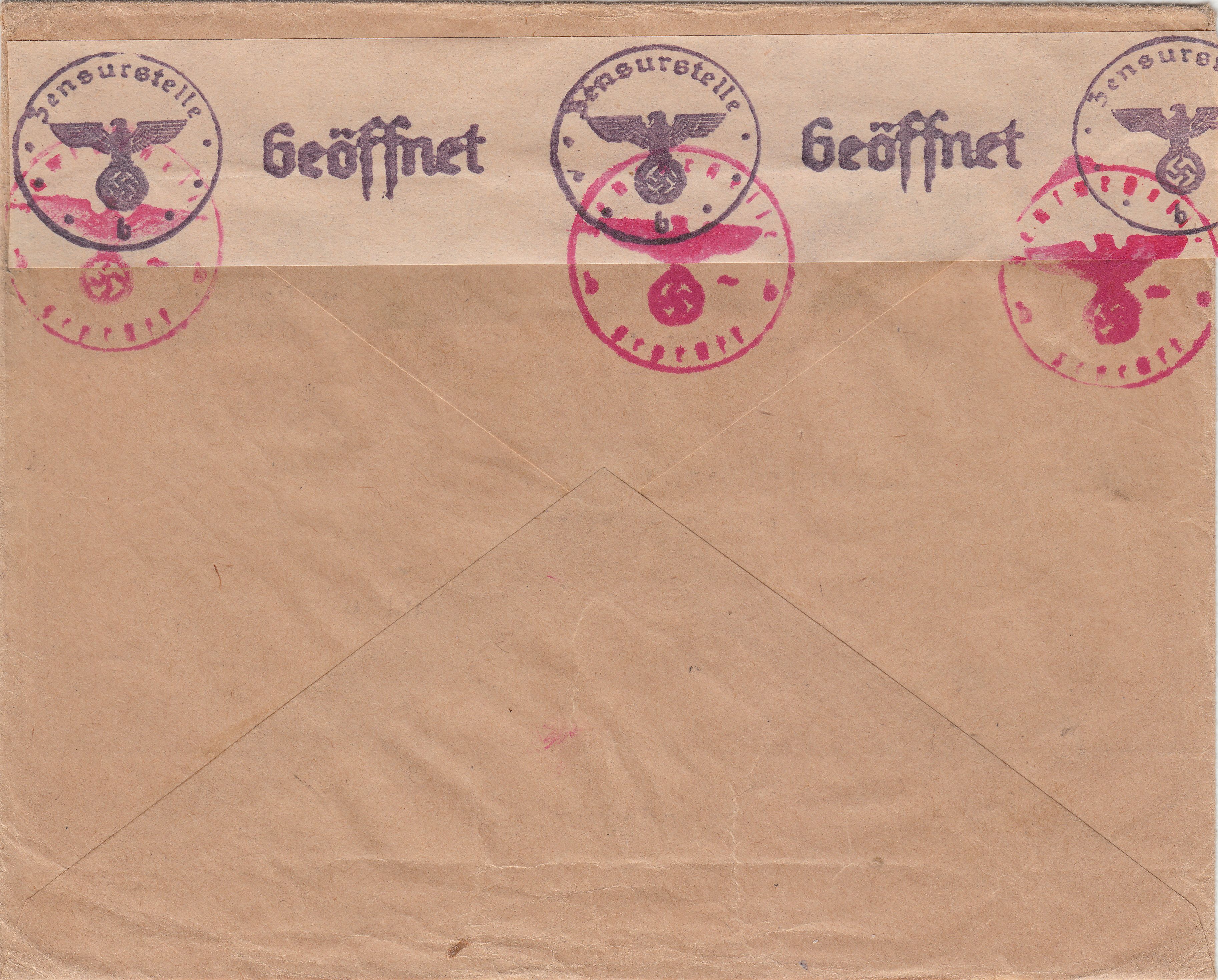 Die Sendung wurde der ABP Berlin zugeleitet, wo vorderseitig ein Zensurstempel in Rot, Landsmann BP4.10, abgeschlagen wurde.