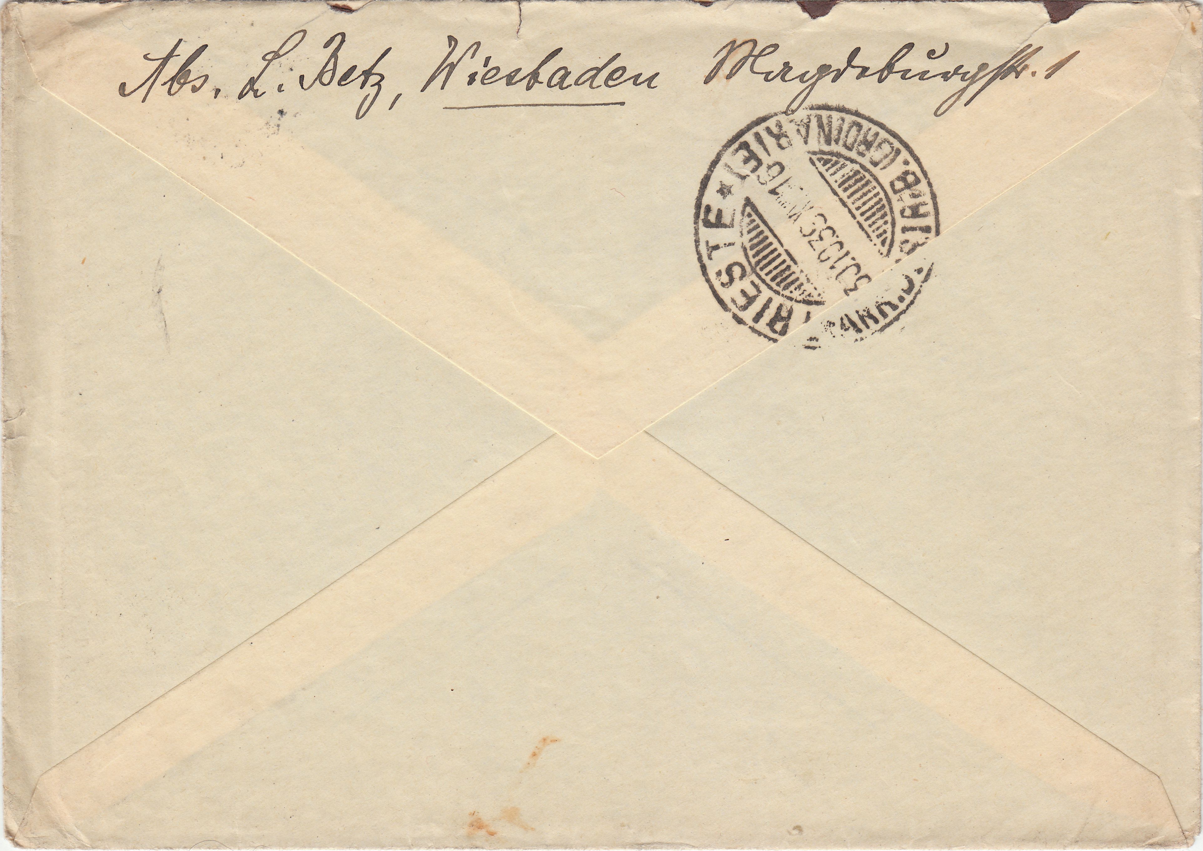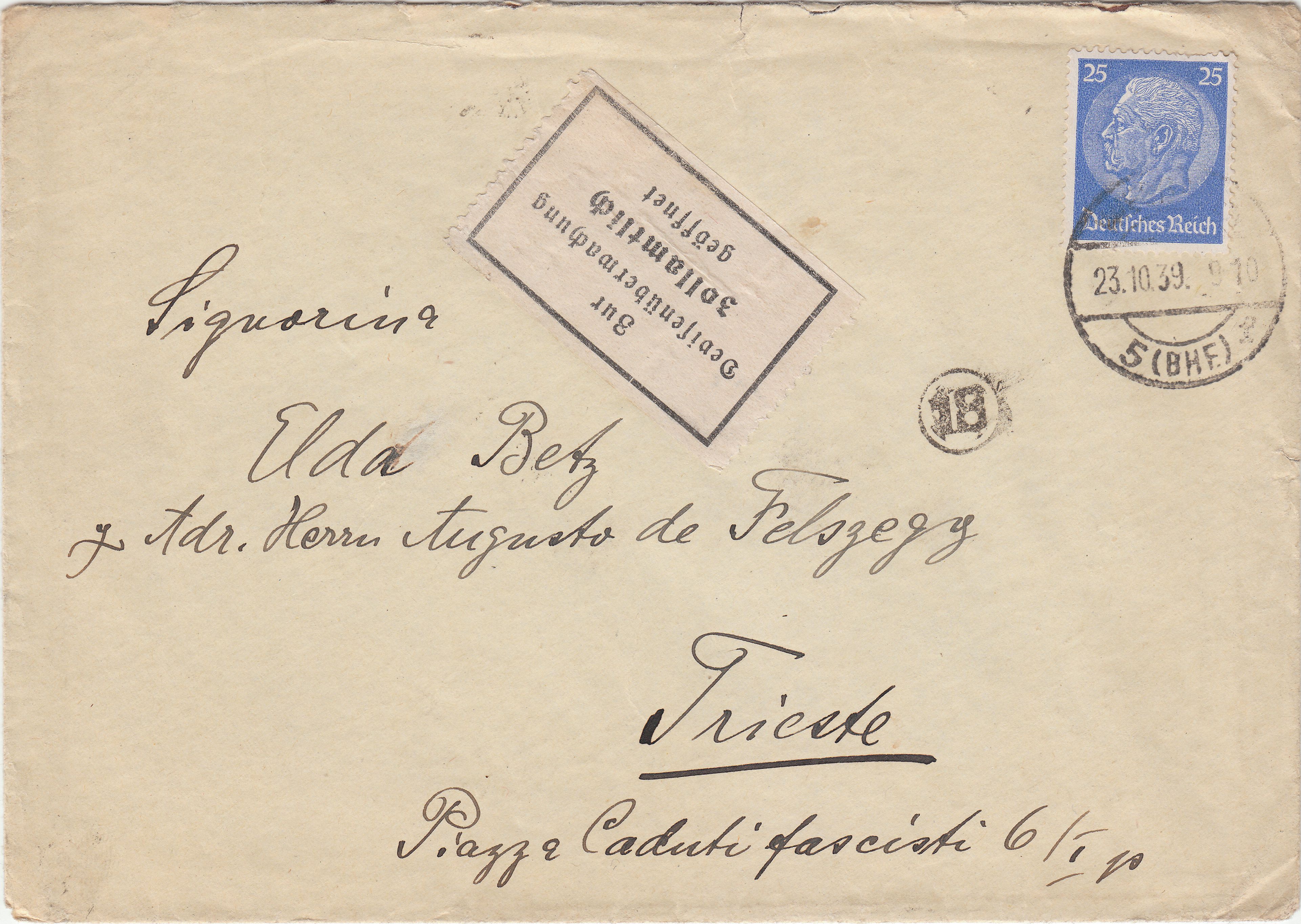 Hier ein nach Triest adressierter Beleg, aufgegeben am 23.10.1939 in Wiesbaden: