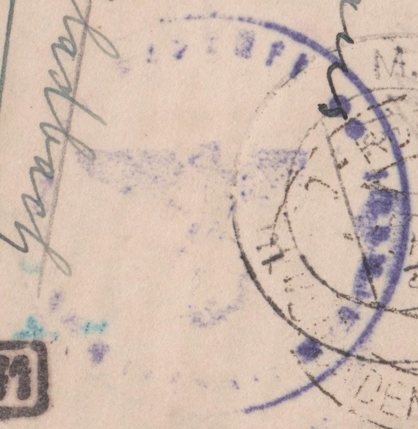 Bei dem vorderseitig abgeschlagenen Kreisstempel "18" dürfte es sich um einen Briefträgerstempel aus Triest handeln, denn Prüferstempel waren in der ABP München zu diesem Zeitpunkt noch nicht im Einsatz.