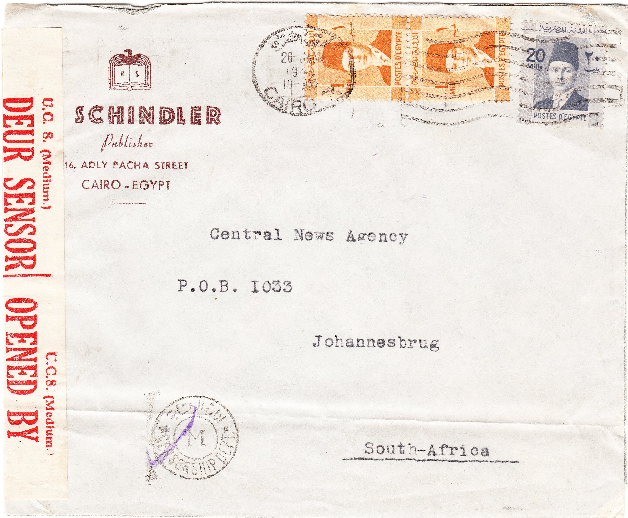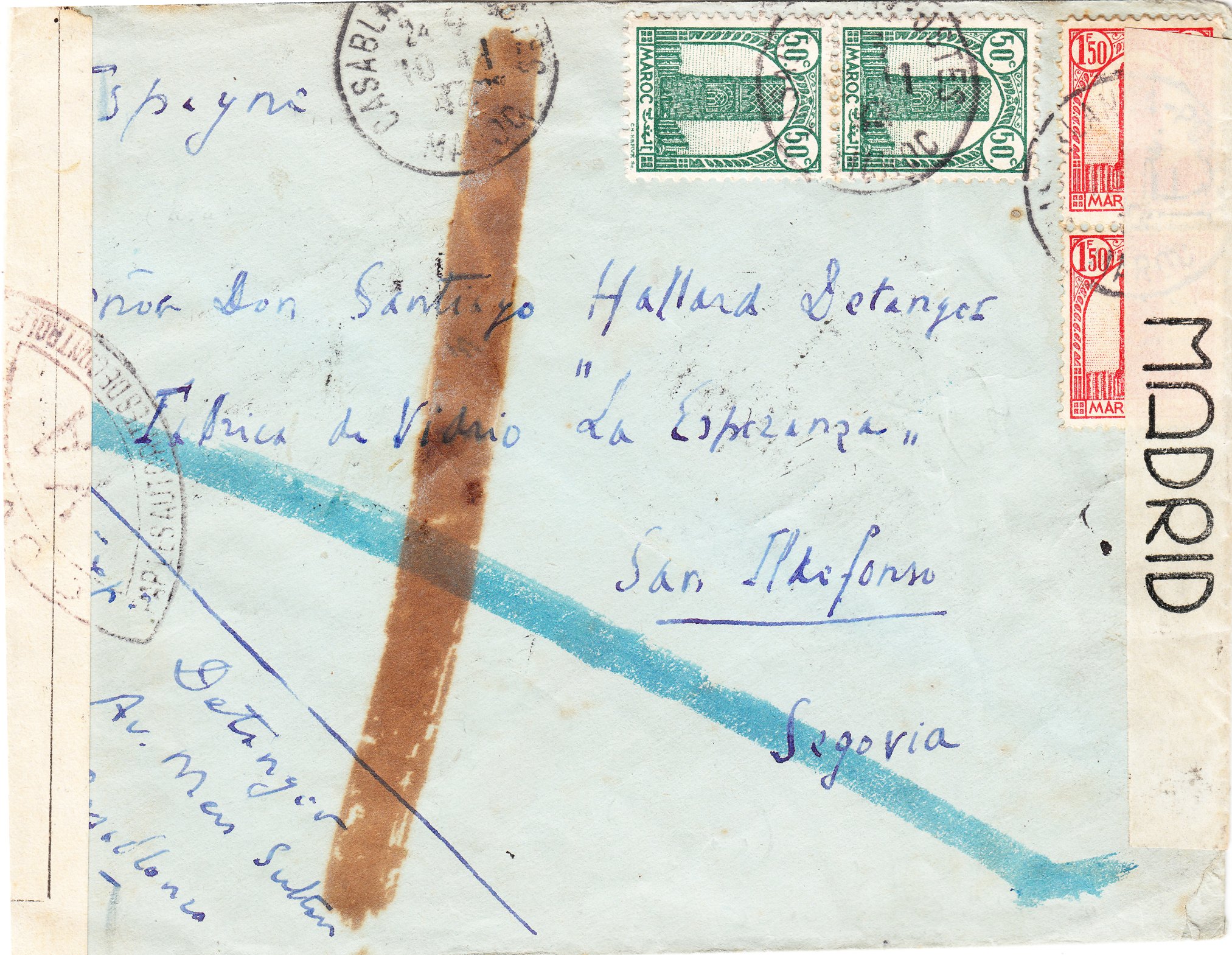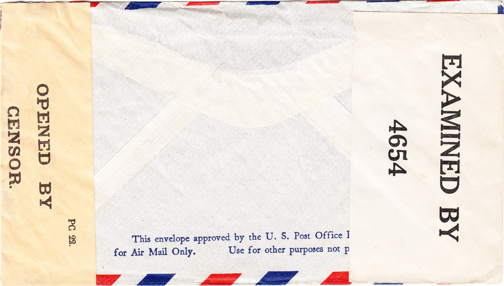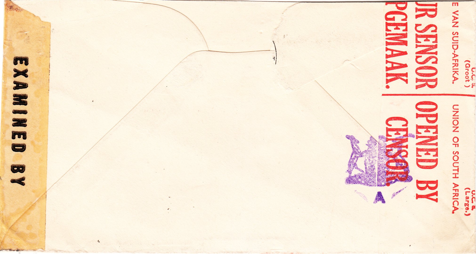 Dann durchlief der Beleg die italienische Auslandsbriefprüfstelle in Mailand, wurde dort rückseitig geöffnet und mit einem 20 mm breiten Verschlußzettel mit vertikalen Trennstrichen "VERIFICATO PER CENSURA" wieder verschlossen. Zur Dokumentation wurde rückseitig der Zweikreisstempel "UFFICIO CENSURA POSTA ESTERA II", Außendurchmesser 34 mm, Innendurchmesser 19 mm, abgeschlagen.