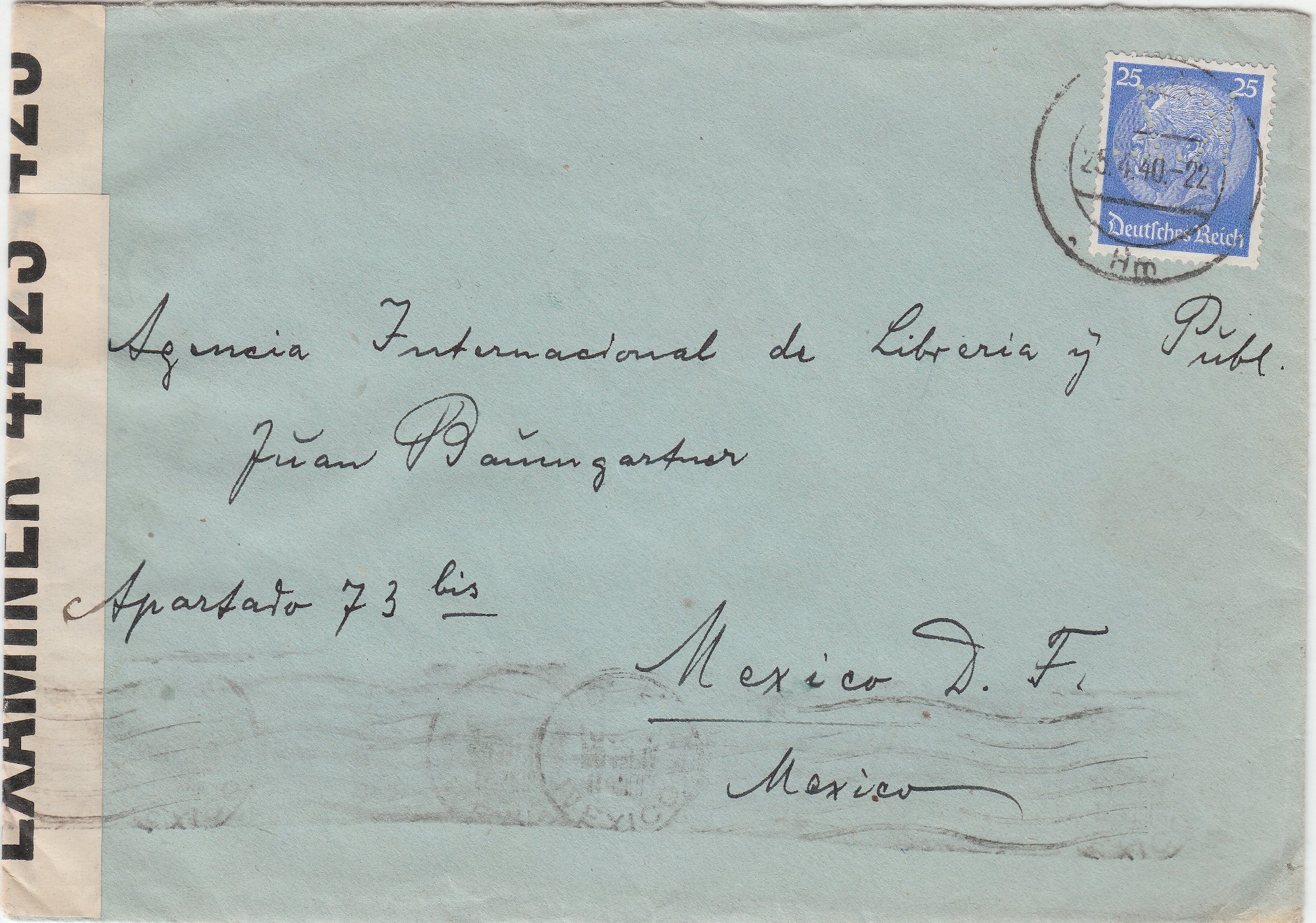 Anschließend lief der Brief durch die Auslandsbriefprüfstelle München, die für Post von und nach Italien zuständig war. Dort wurde der Beleg linksseitig geöffnet und nach erfolgter Zensurierung mit der Briefverschlußvorrichtung wieder verschlossen, was mit einem Stempel der Briefverschlußvorrichtung "OKW" in Blau dokumentiert wurde.